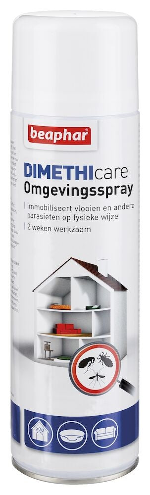 Beaphar Dimethicare Omgevingsspray bestrijdt parasieten in de leefomgeving van u en uw huisdieren.