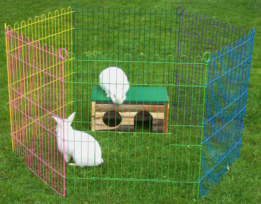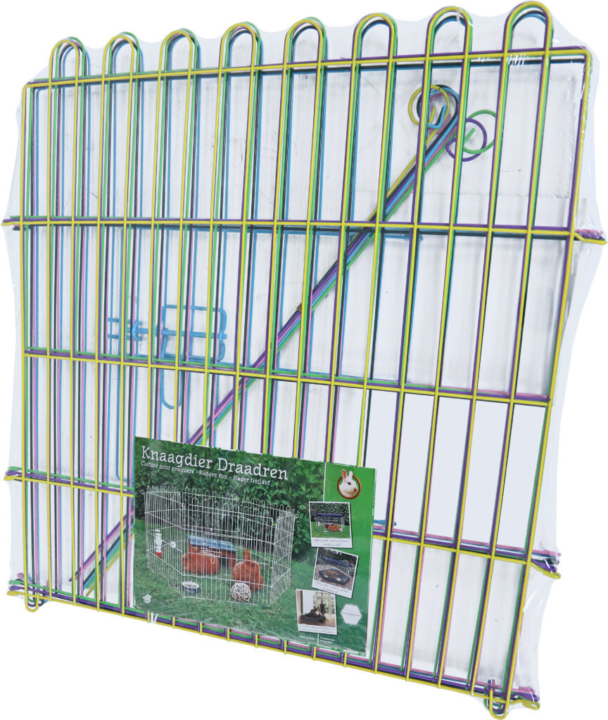 Geef je konijn of knaagdier alle ruimte om te bewegen met deze kleurrijke draadren. De 6-delige ren is eenvoudig op te zetten op gazon of terras en biedt een veilige speelplek met voldoende ruimte voor speelgoed en schuilhuisjes. Gemaakt van stevig verzinkt metaal en voorzien van één handig deurtje. Ideaal voor frisse lucht en beweging in een gecontroleerde omgeving.