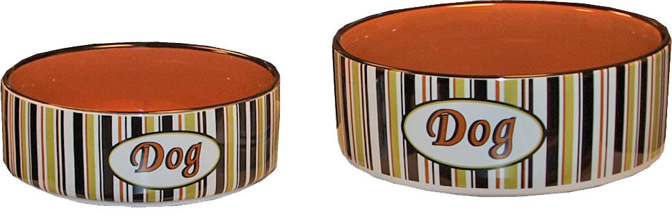 Deze prachtig gestreepte honden eet- en drinkbak is gemaakt van duurzaam steen, wat zowel stijl als functionaliteit biedt. De bak heeft een opdruk “Dog” aan de buitenkant en een bruine binnenkant. Het is eenvoudig schoon te maken en verkrijgbaar in meerdere maten om perfect aan de behoeften van je huisdier te voldoen.
