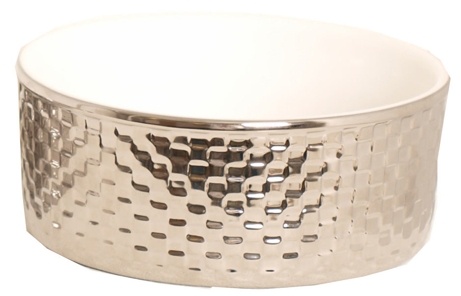 De Boon Eetbak Steen Hond Prestige Zilv Wit 18cm combineert elegantie en functionaliteit. Gemaakt van hoogwaardig keramiek met een glanzende zilveren buitenkant en een witte binnenkant, voegt deze eet- of drinkbak een vleugje luxe toe aan de voerplek van je hond. Het duurzame materiaal zorgt ervoor dat de bak stevig blijft staan en gemakkelijk te reinigen is, perfect voor dagelijks gebruik.