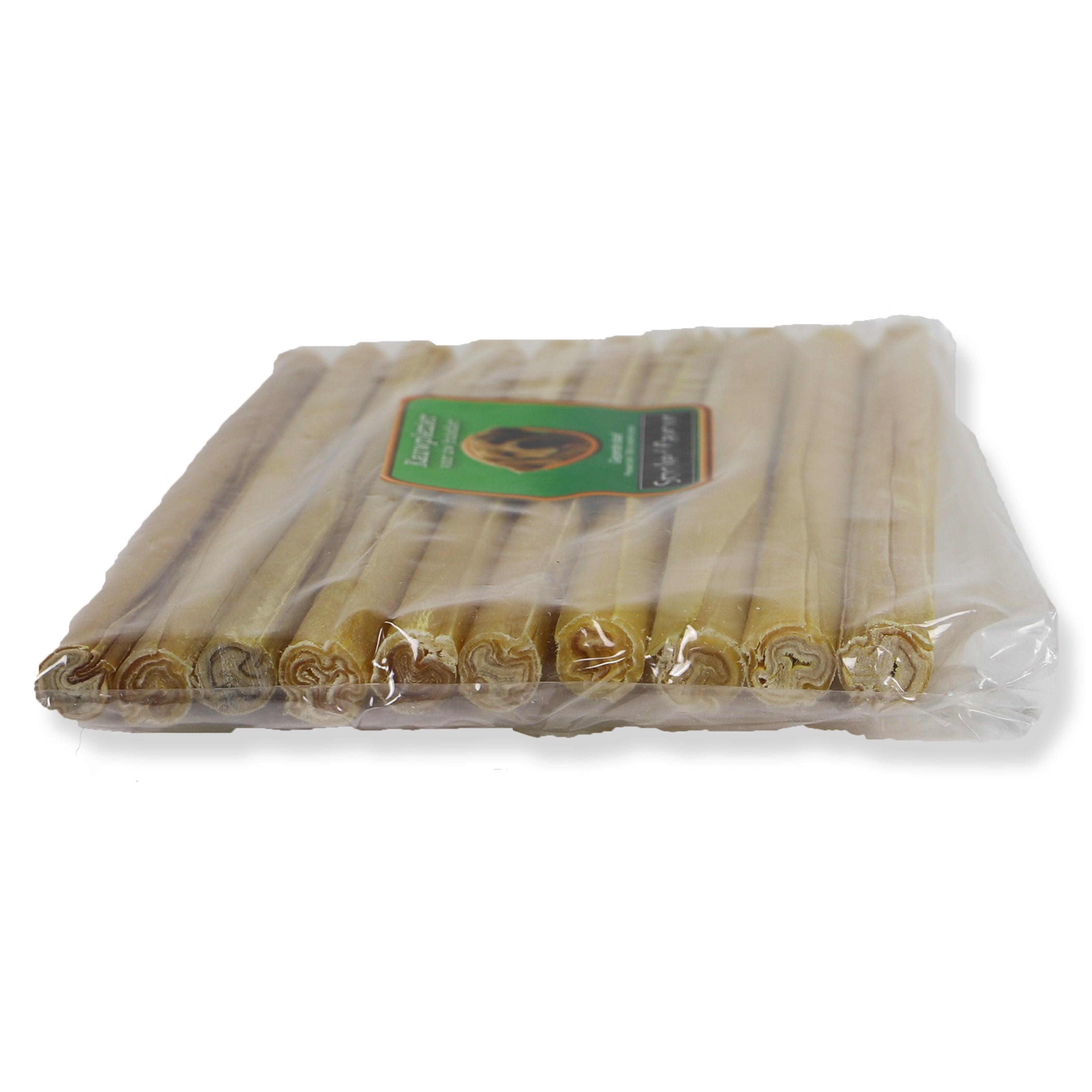 De Kauwstaaf Gerookt 20mm 25cm is gemaakt van 100% natuurlijke buffelhuid van de beste Thaise kwaliteit. Deze zwaar geperste kauwstaaf helpt bij het reinigen van het gebit en biedt langdurig kauwplezier. Elke verpakking bevat 10 kauwstaven, ideaal voor honden die van een stevige snack houden.