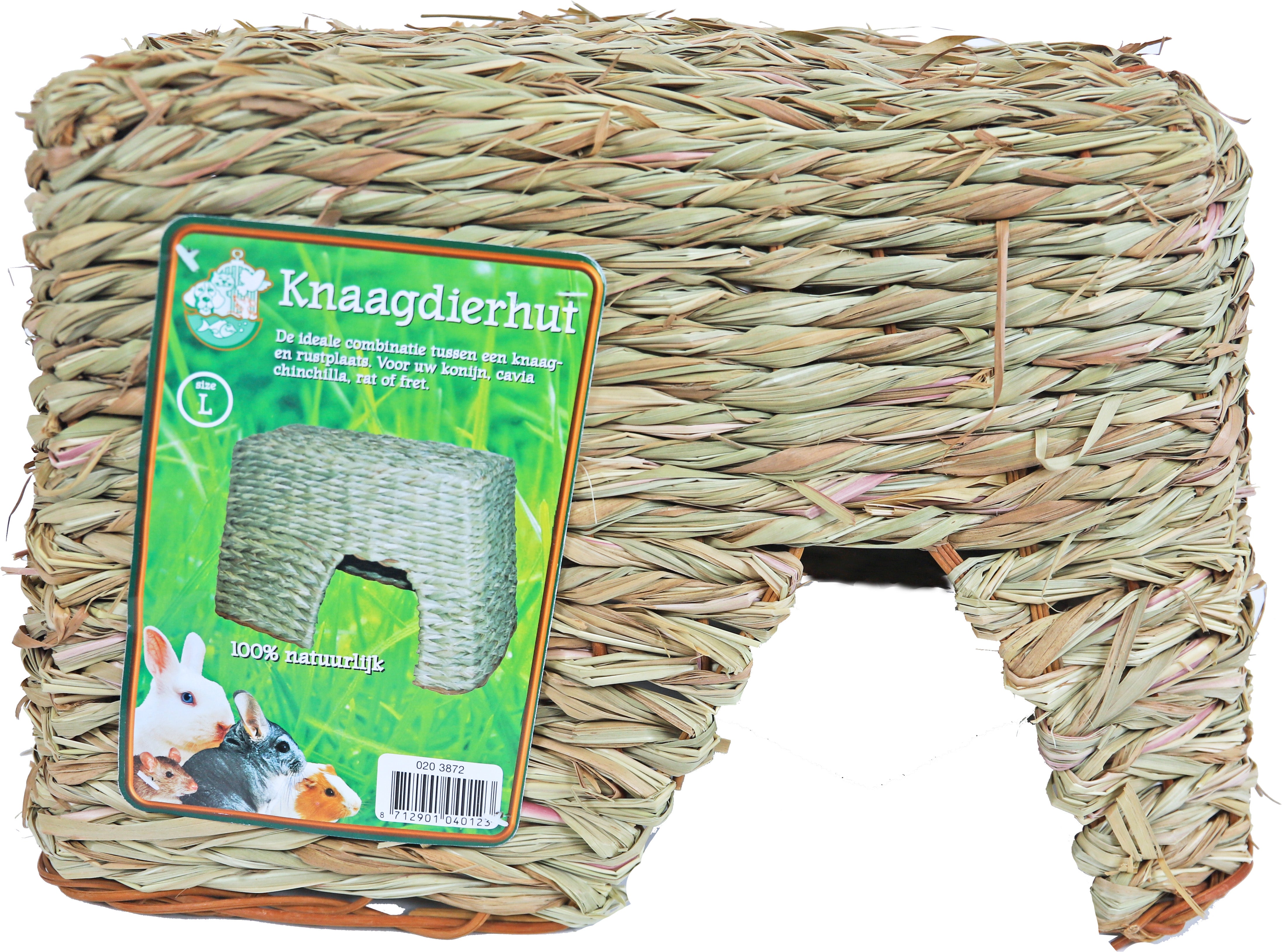 De Knaagdierhut Large is een 100% natuurlijke schuilplek, perfect voor konijnen, cavia’s, chinchilla’s en andere knaagdieren. Gemaakt van natuurlijk gras biedt deze hut een veilige en comfortabele rustplek, terwijl het materiaal veilig is om aan te knagen.