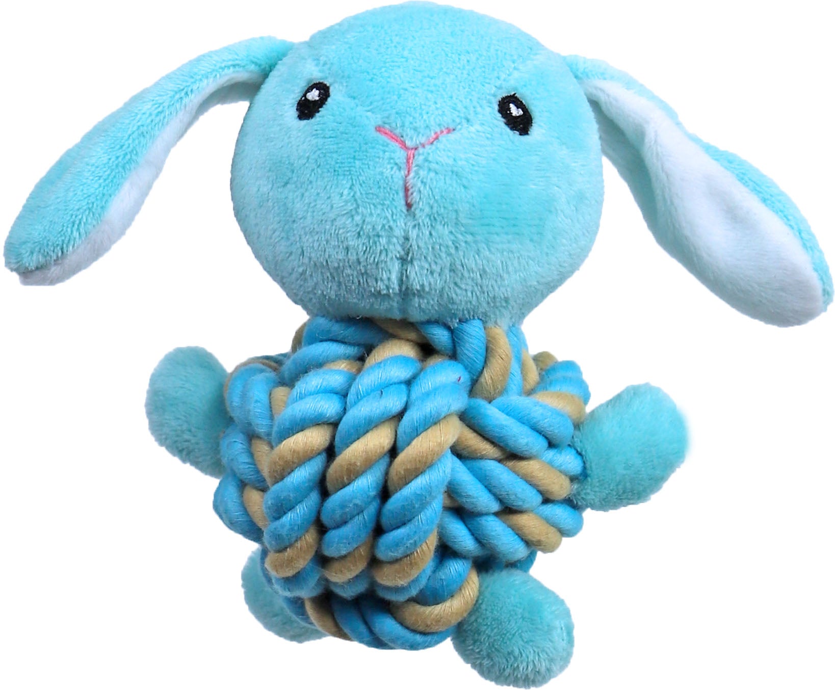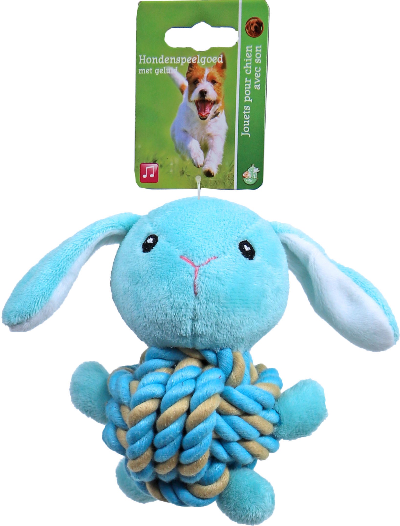Unieke combinatie: Pluche konijn met een buik van flosstouw, ideaal voor kauwen.