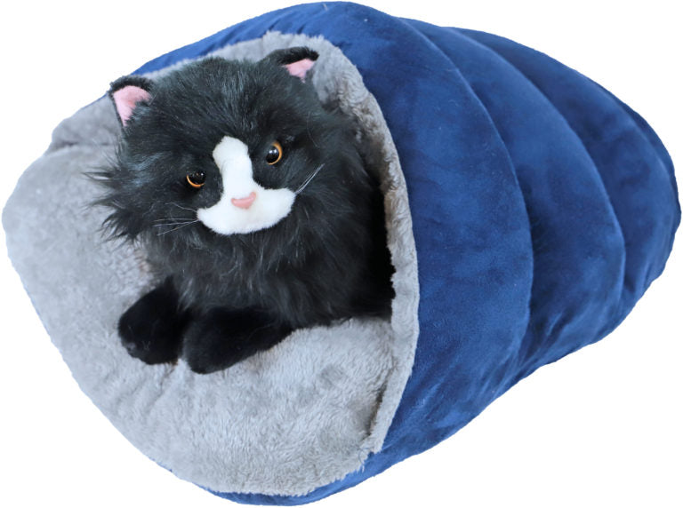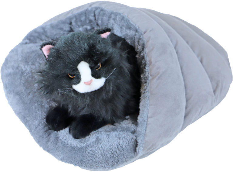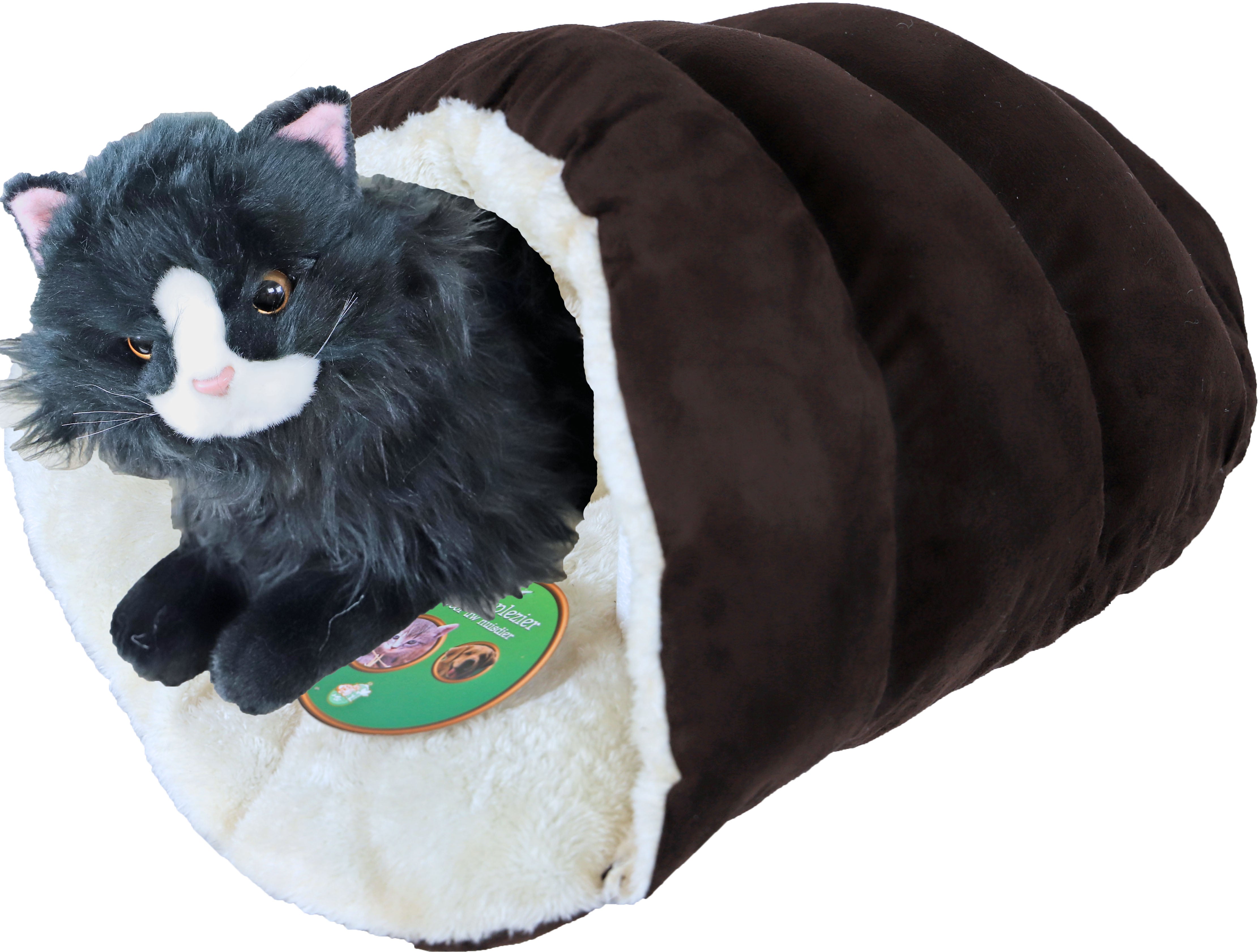 Deze slaapzak is ideaal voor katten, kittens of kleinere hondenrassen die graag een knusse en veilige plek zoeken om te rusten. Met een zachte pluche voering biedt deze slaapzak ultiem comfort en warmte, perfect voor je huisdier om zich lekker in te verstoppen of in weg te dromen. Verkrijgbaar in drie kleuren, deze slaapzak voegt zowel functionaliteit als stijl toe aan de rustplek van je huisdier.