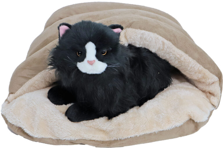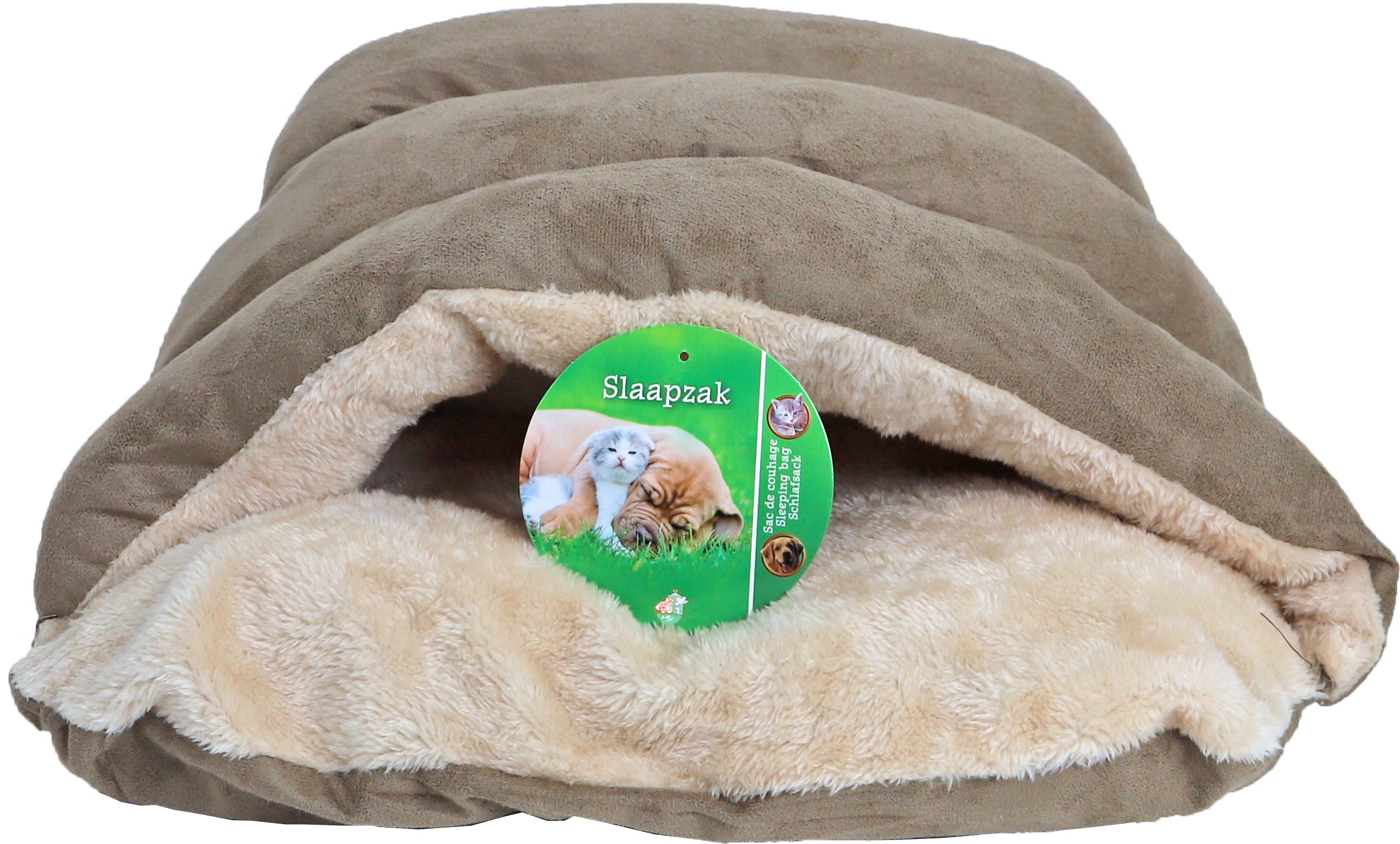 De Boon slaapzak 45 cm in bruin/beige is het perfecte rustplekje voor je huisdier. Deze slaapzak biedt zowel een comfortabele ligplek als bescherming, met een zachte pluche binnen- en buitenkant. Of je huisdier nu liever in de slaapzak kruipt of de zachte ondergrond gebruikt, de slaapzak biedt beide mogelijkheden. De trendy kleuren maken het bovendien een stijlvolle toevoeging aan elk interieur.