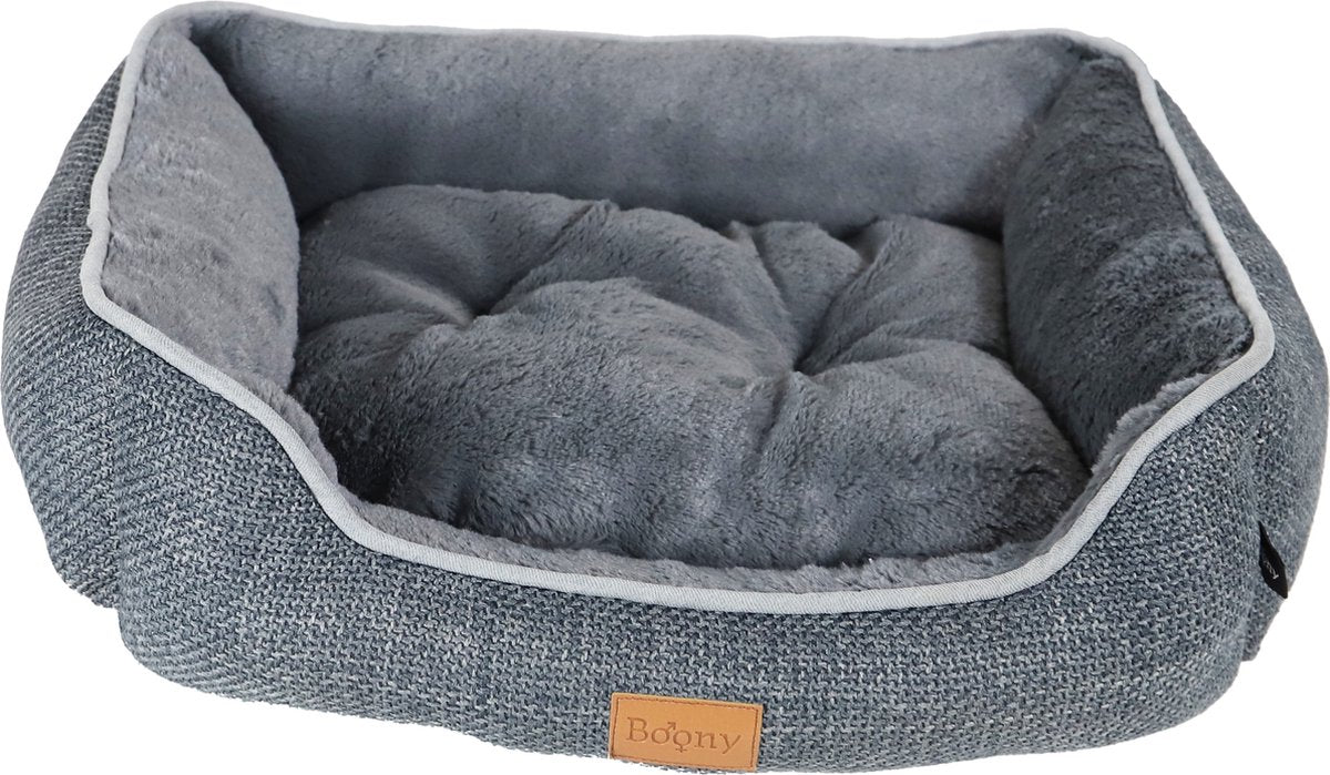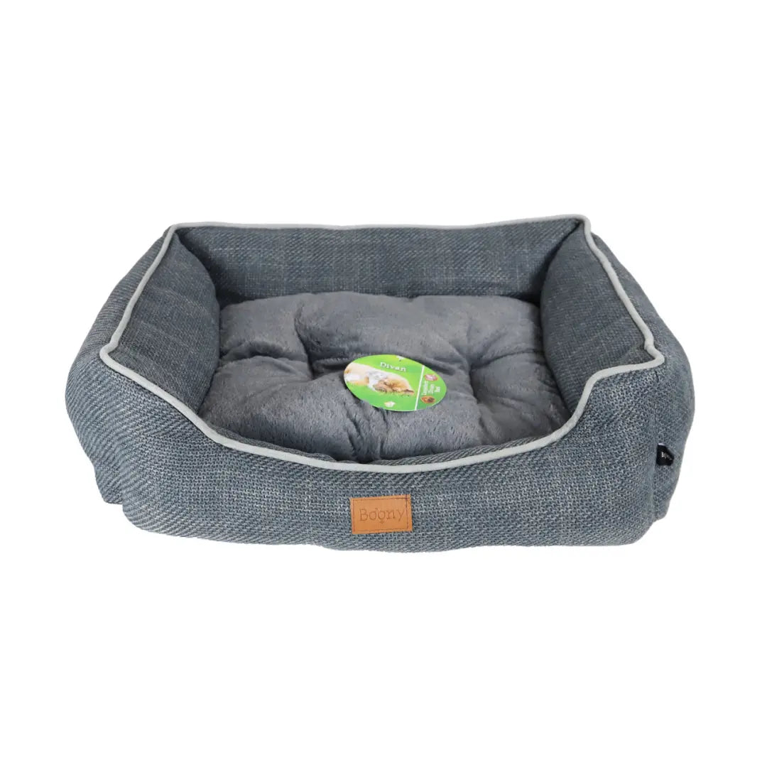 De Boony Divan Linnenlook biedt jouw kat of kleine hond een warme, knusse en luxe plek om te ontspannen. Het afneembare kussen heeft een tweezijdig ontwerp met een lichtgrijze en donkergrijze zijde, zodat je de stijl naar wens kunt aanpassen. De linnenlook stof geeft de divan een chique uitstraling die in elk interieur past.