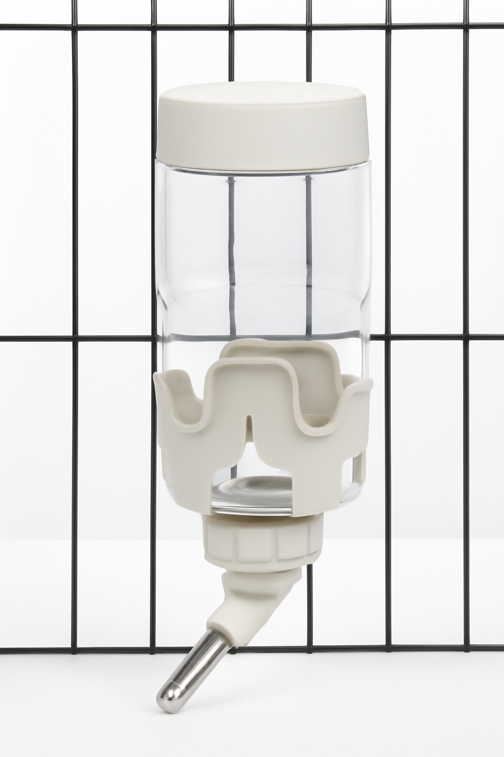 Bespaar tijd en bied je dier altijd vers water – met de Boony vulbare drinkfles met houder en RVS tuit.