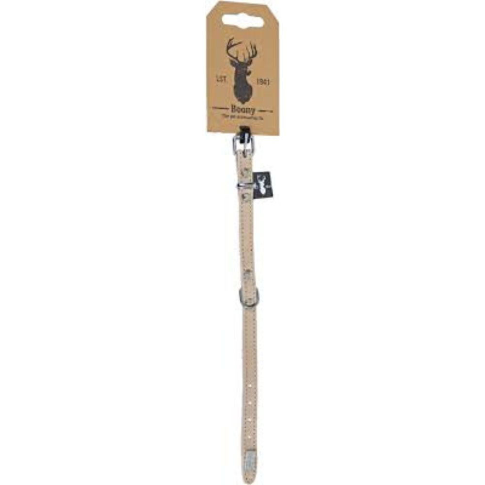 De Boony Est 1941 Halsband Leder Sand is een prachtige, handgemaakte halsband van echt leder, geproduceerd in Nederland met hoogwaardige materialen. Deze premium halsband is voorzien van een stijlvol metalen Boony ‘EST 1941’ logo en straalt luxe en duurzaamheid uit. Dankzij het stevige ontwerp en de comfortabele pasvorm is deze halsband perfect voor dagelijks gebruik.