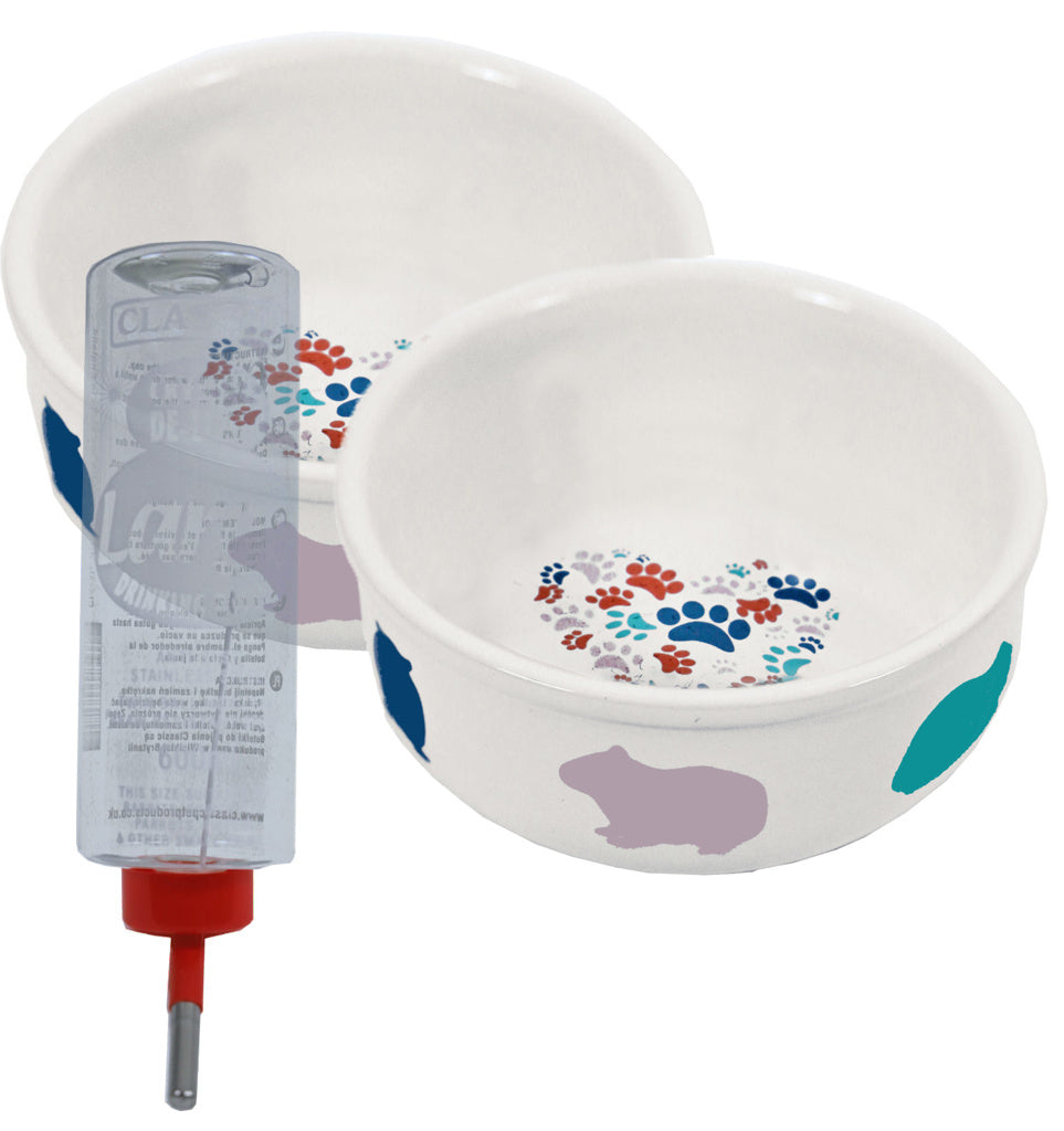 Cavia Voerbak Bundel bevat twee vrolijke eetbakken en een handige drinkfles voor je cavia. Alles wat je nodig hebt om je cavia goed te verzorgen, met een vrolijk ontwerp en praktische functionaliteit.