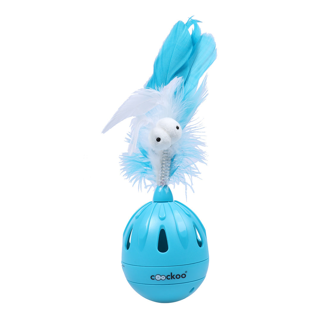 Het speeltje is eenvoudig open te draaien en te vullen met jouw kat's favoriete snoepjes. Tijdens het spelen vallen de snoepjes er onregelmatig uit. De muziek en veertjes zorgen voor nog meer beleving.
