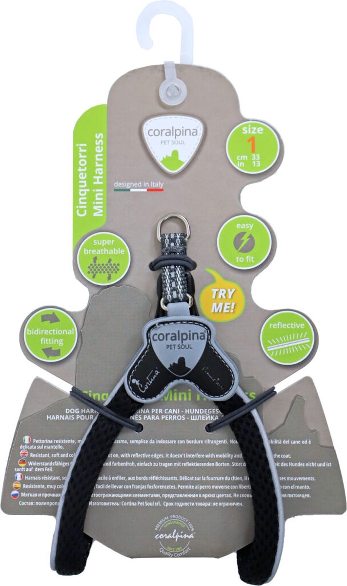 Het Cinquetorri Mini harnas is speciaal ontworpen voor honden en biedt maximaal comfort en controle. Dankzij het FIT & GO-systeem verdeelt het harnas de druk gelijkmatig en voorkomt het schuren op de vacht. Het lichtgewicht ontwerp en de reflecterende details zorgen voor extra veiligheid en zichtbaarheid tijdens wandelingen.