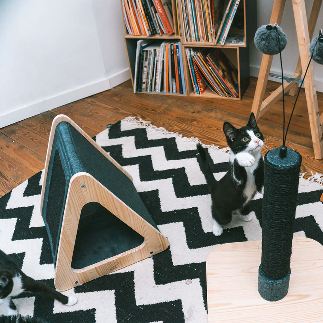 Productomschrijving D&D Home Toto Kattenhuisje 38x39x38cm Zwart/BlauwD&D Home Toto Kattenhuisje 38x39x38cm Zwart/Blauw