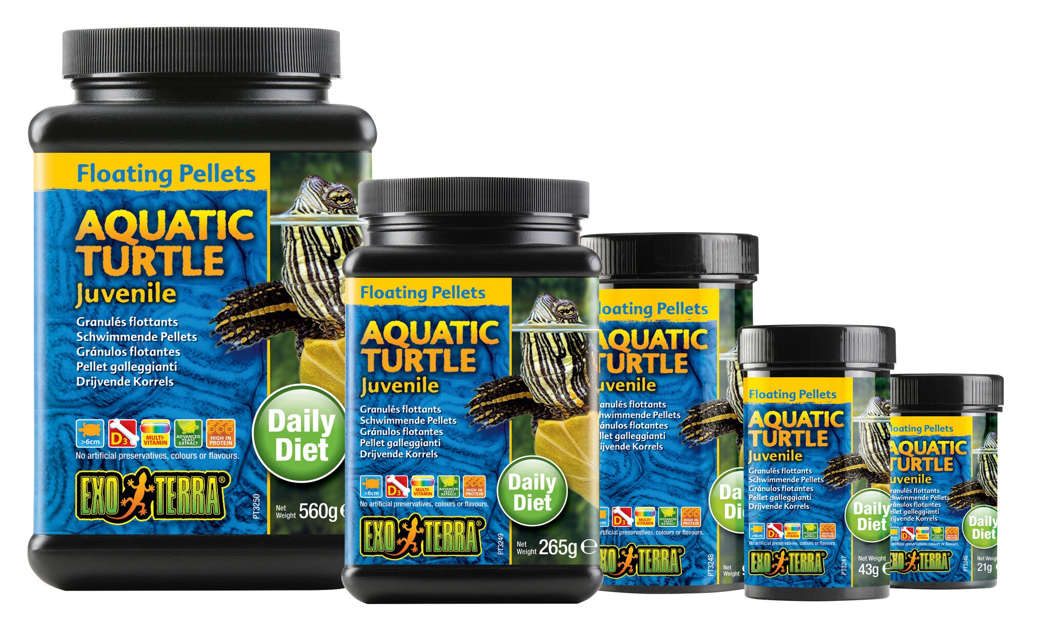 Exo Terra Juvenile Turtle voeding is een voedzame dagelijkse voeding voor volwassen water- en semi-waterschildpadden zoals roodwangschildpadden, landkaartschildpadden, bosschildpadden, enz.
