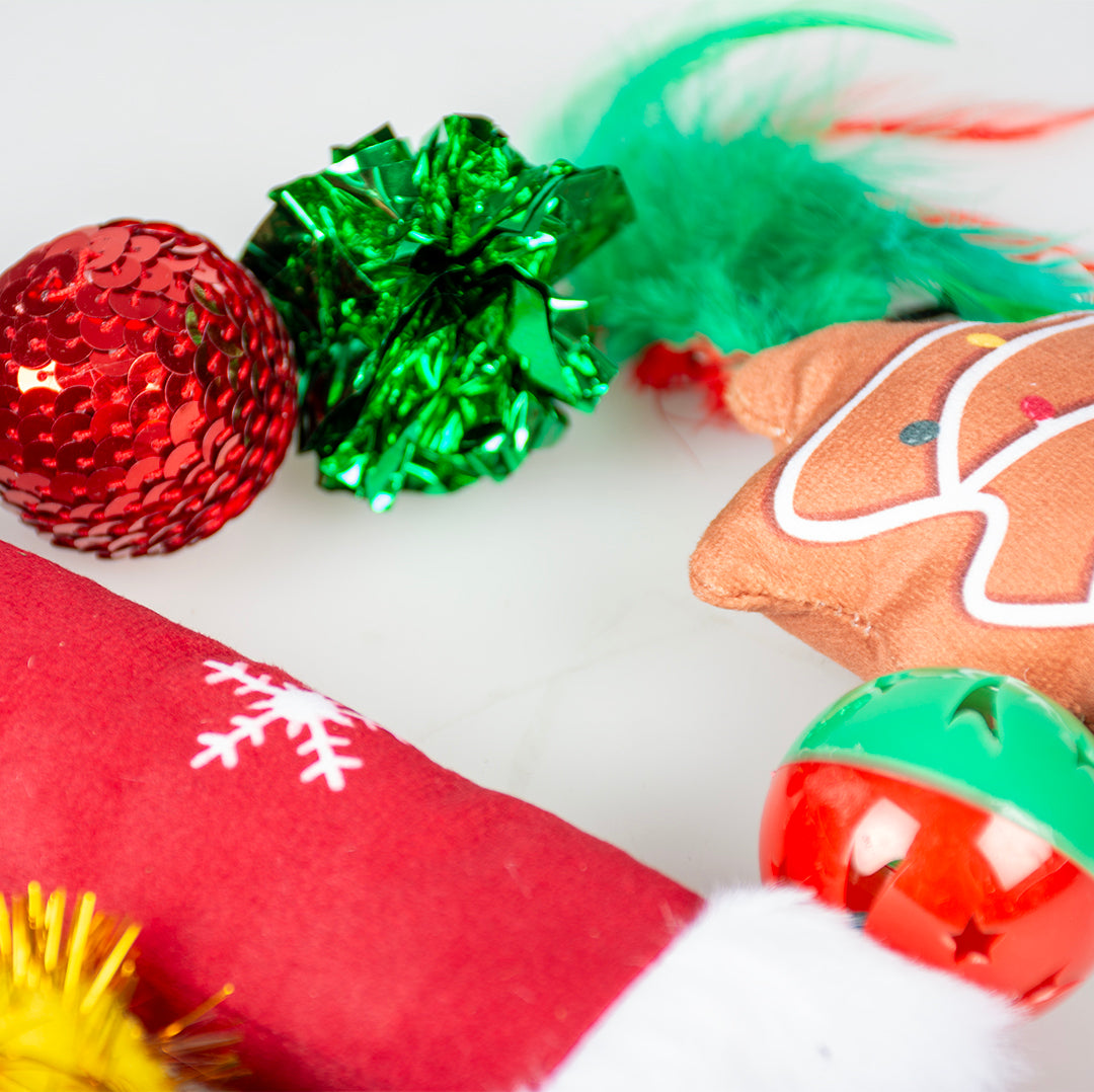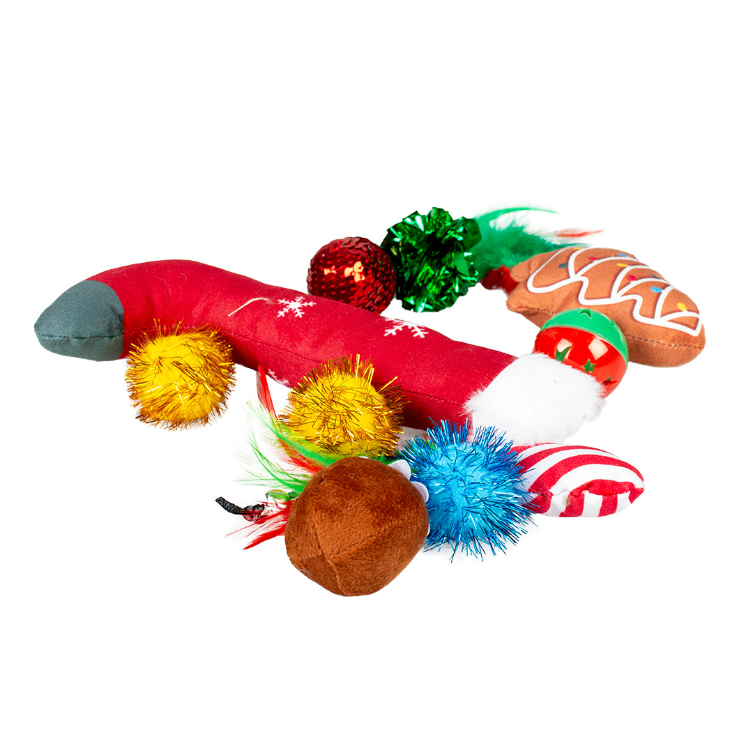 Ben je op zoek naar een leuk cadeau voor onder de kerstboom? Dit Duvoplus geschenkzakje zit boordevol toffe kerstspeeltjes voor katten! Met 10 verschillende speeltjes zorgt deze set voor extra variatie en plezier, perfect voor elke kat. Elk speeltje bevat catnip, wat de speeldrift van je kat stimuleert en zorgt voor uren speelplezier.