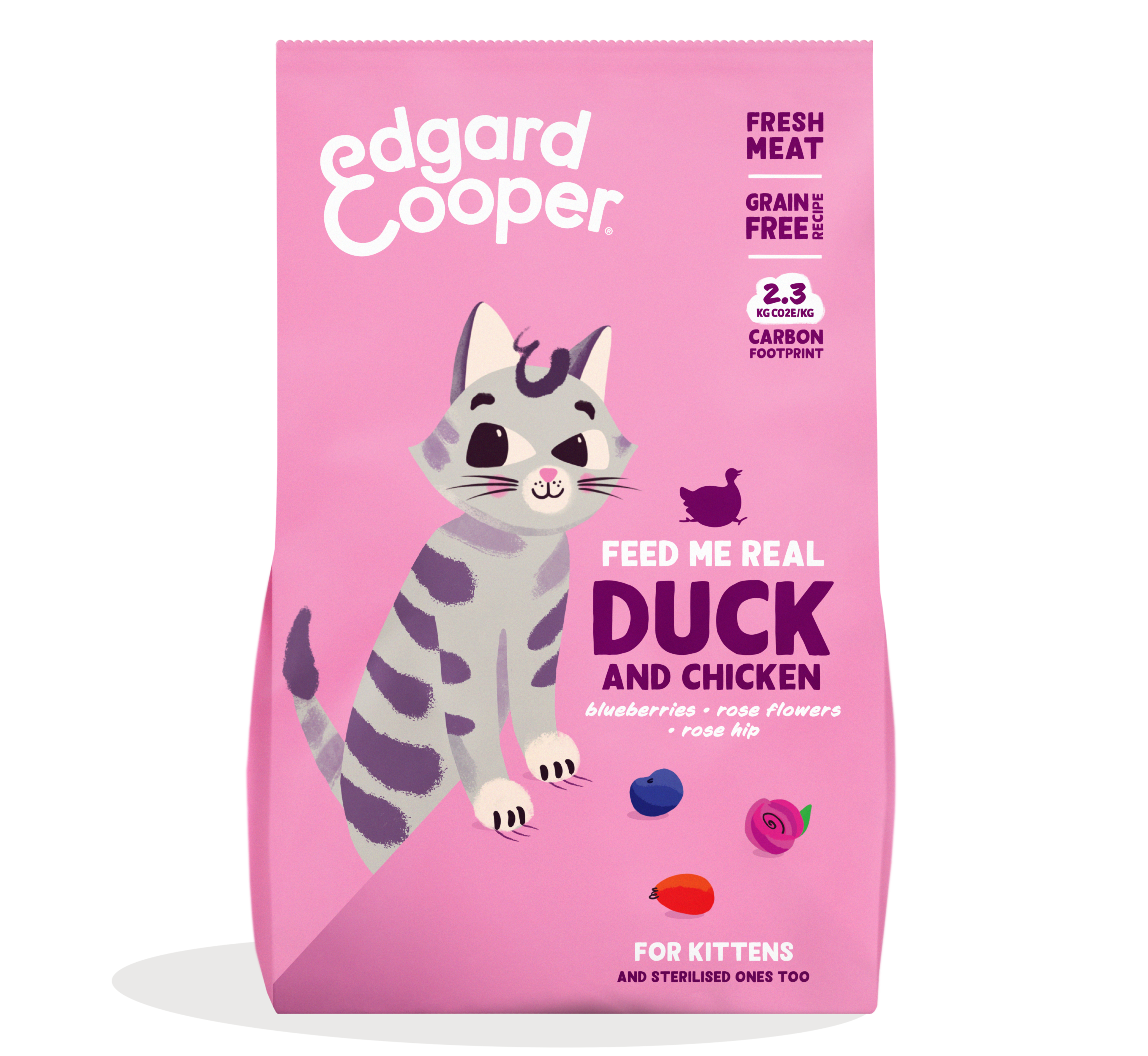Graanvrije brokjes voor opgroeiende (gesteriliseerde) kittens. Met hoogwaardige en verse ingrediënten, zoals scharreleend en vrije uitloop kip, met bosbessen, rozenbloemen en rozenbottel. Boordevol eiwitten voor een gezonde groei.