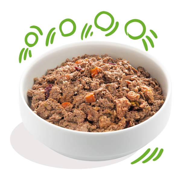 Graanvrij en glutenvrij zachtvoer met verse lam, rund, wortel en biet. Voor volwassen honden. Een fantastische mix van makkelijk verteerbare eiwitten, supergezond fruit en smaakvolle kruiden.