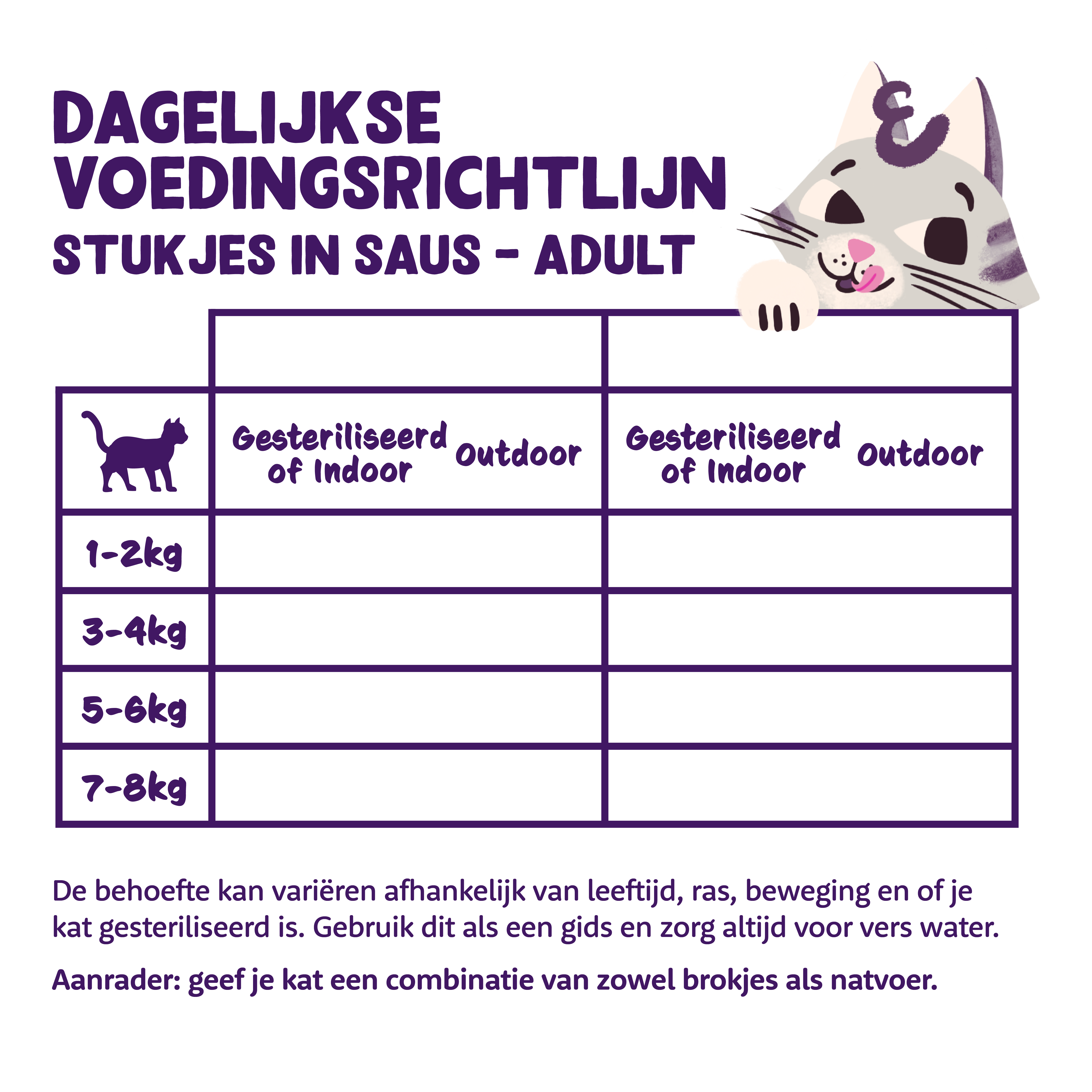 Sappige stukjes in een overheerlijke saus voor volwassen (gesteriliseerde) katten.