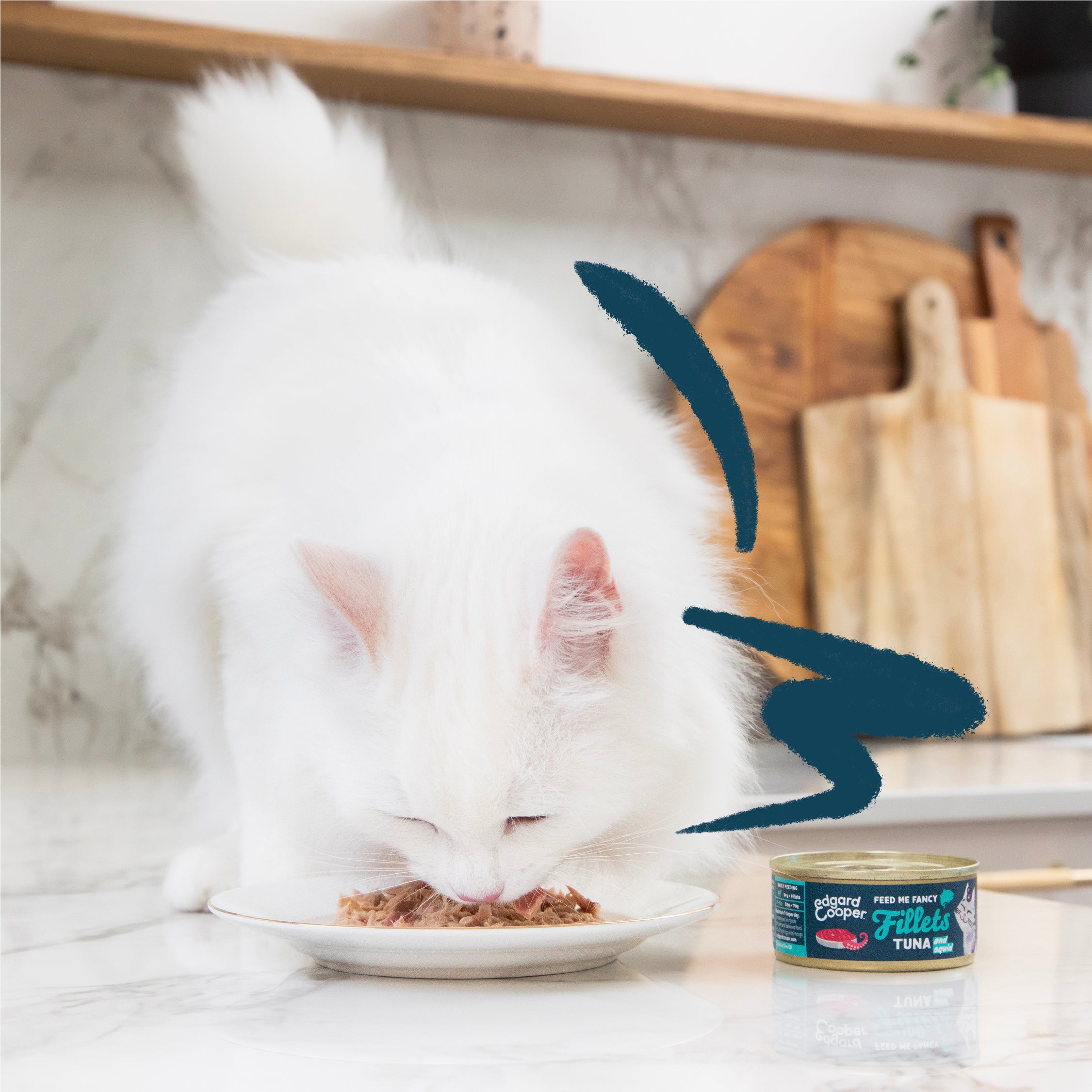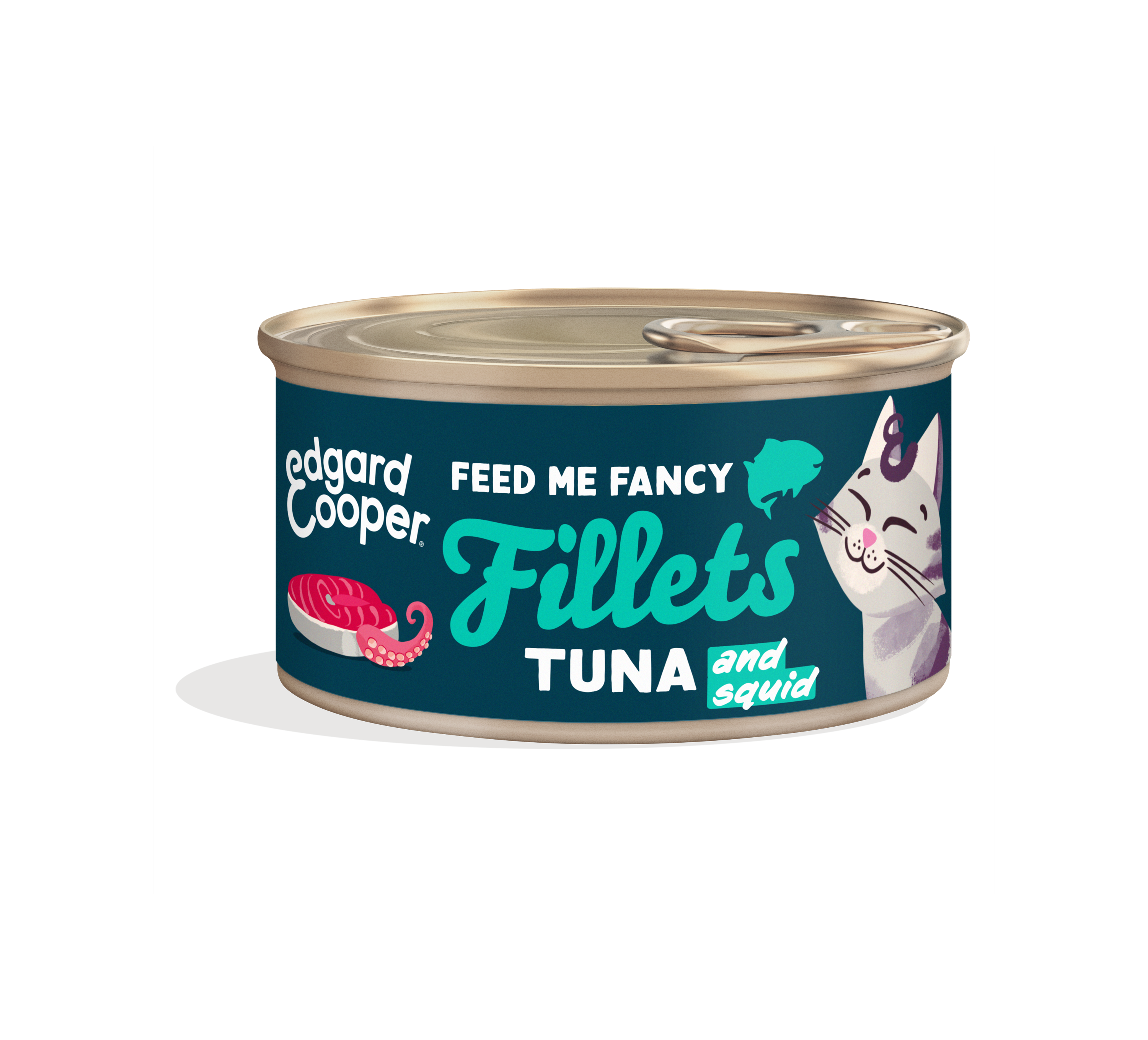 Verfijnde filets met een topping van inktvis, voor echte fijnproevers. De perfecte aanvulling op Edgard & Cooper brokjes en gemengd zachtvoer. Voor deze tonijnfilets is enkel skipjack gebruikt. Skipjacktonijn is geen bedreigde soort en is rijker van smaak. Zo ben je gerust dat je het beste geeft voor je dier én voor de planeet.