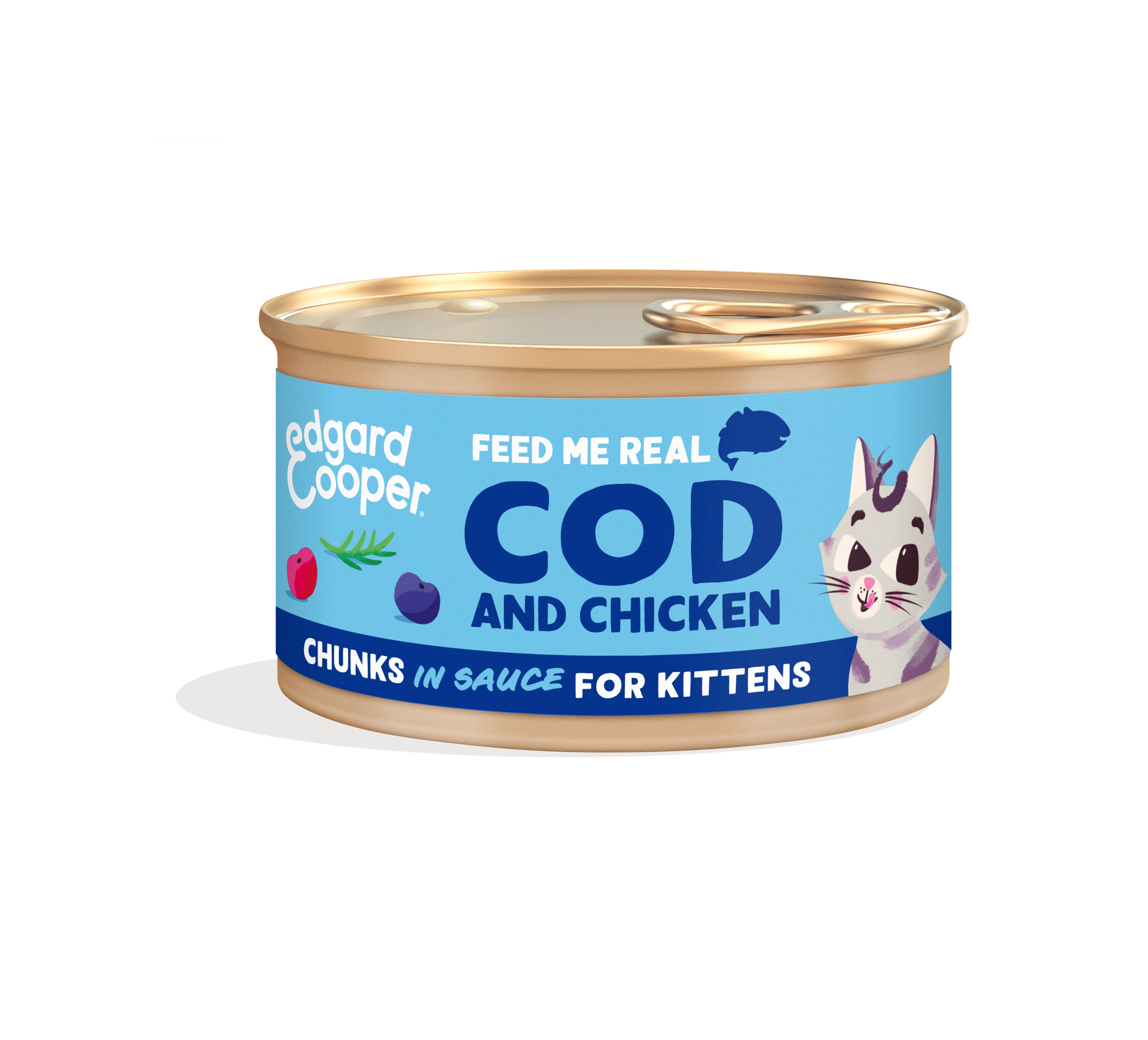 Edgard & Cooper Kitten Stukjes-in-saus Kabeljauw & Scharrelkip Graanvrij