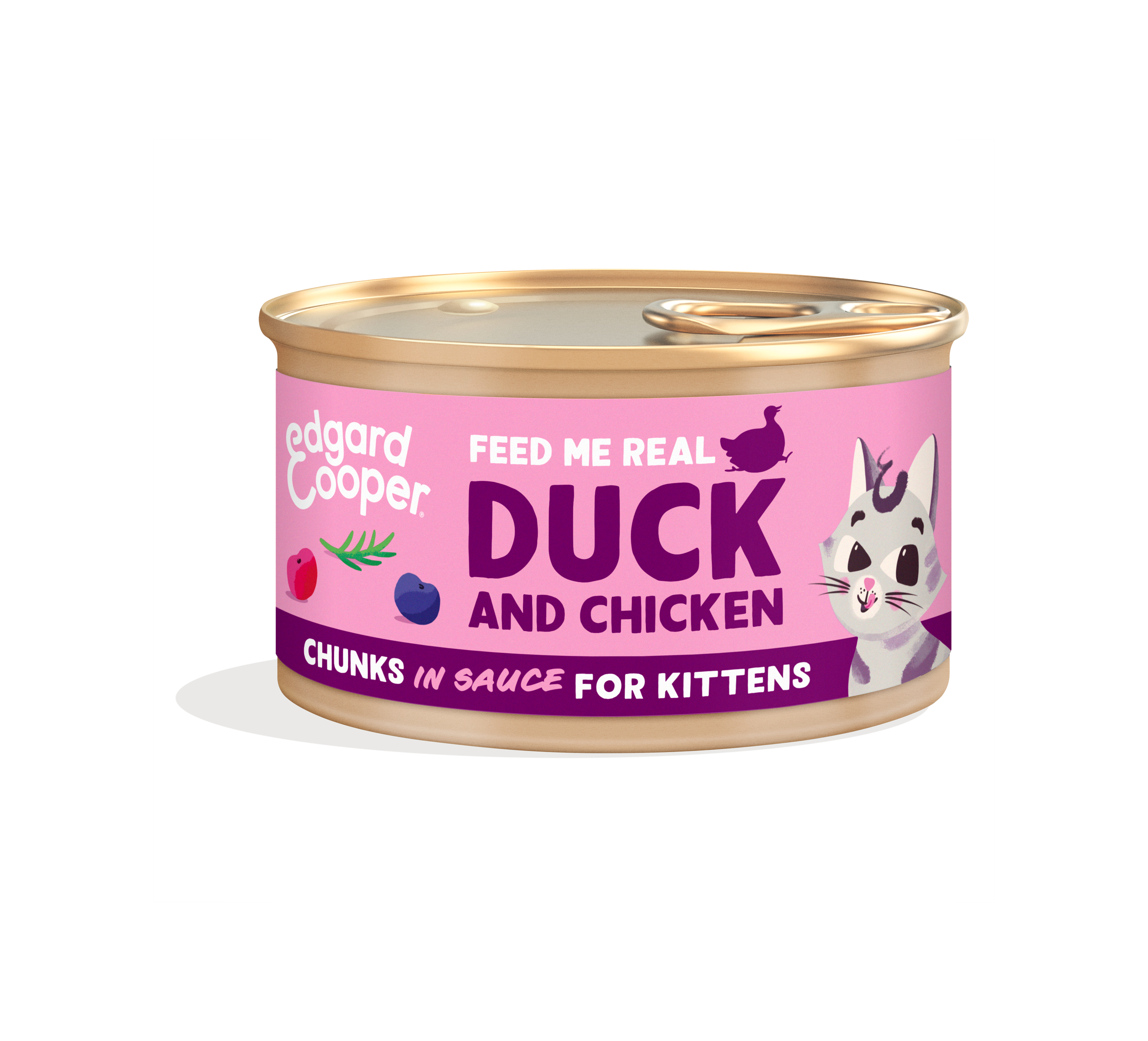 Edgard & Cooper Kitten Stukjes-in-saus Scharreleend & Kip Graanvrij