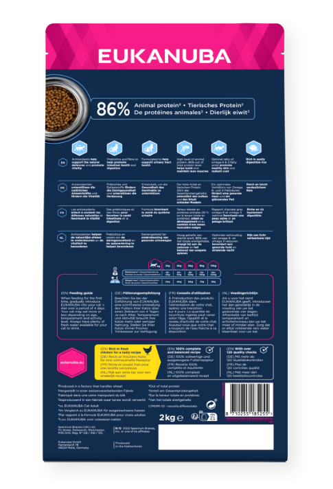 Bevat L-carnitine en 21% minder vet om vetverbranding te bevorderen en een ideaal gewicht te behouden. Dit smakelijke recept met verse kip bestaat voor 86% uit dierlijke eiwitten, wat helpt bij het opbouwen en behouden van gezonde spieren.
