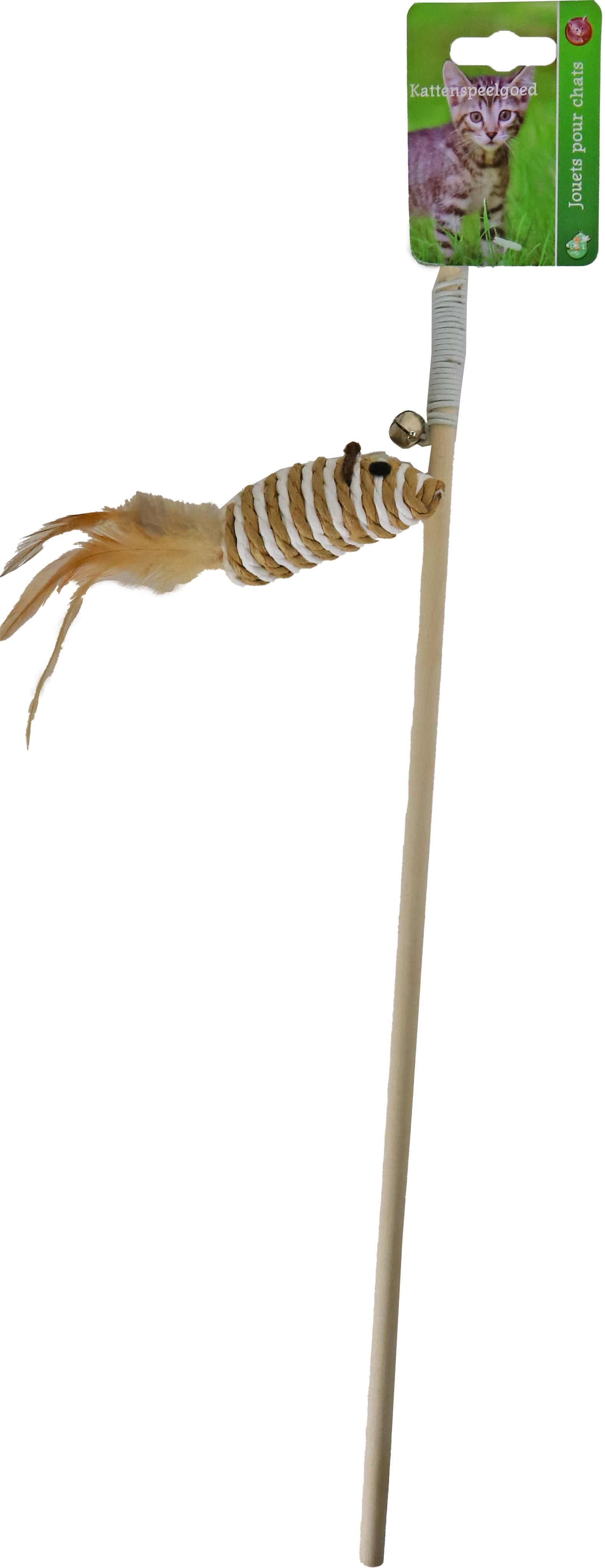 Beleef vele uren speelplezier met je kat dankzij dit interactieve hengeltje. Voorzien van een muis van raffia met bel en een elastische verbinding, die natuurlijk jachtgedrag stimuleert. Met de 45 cm lange hengel speel je veilig en actief mee terwijl je kat danst en springt!