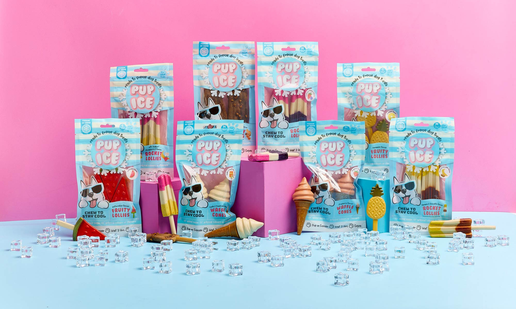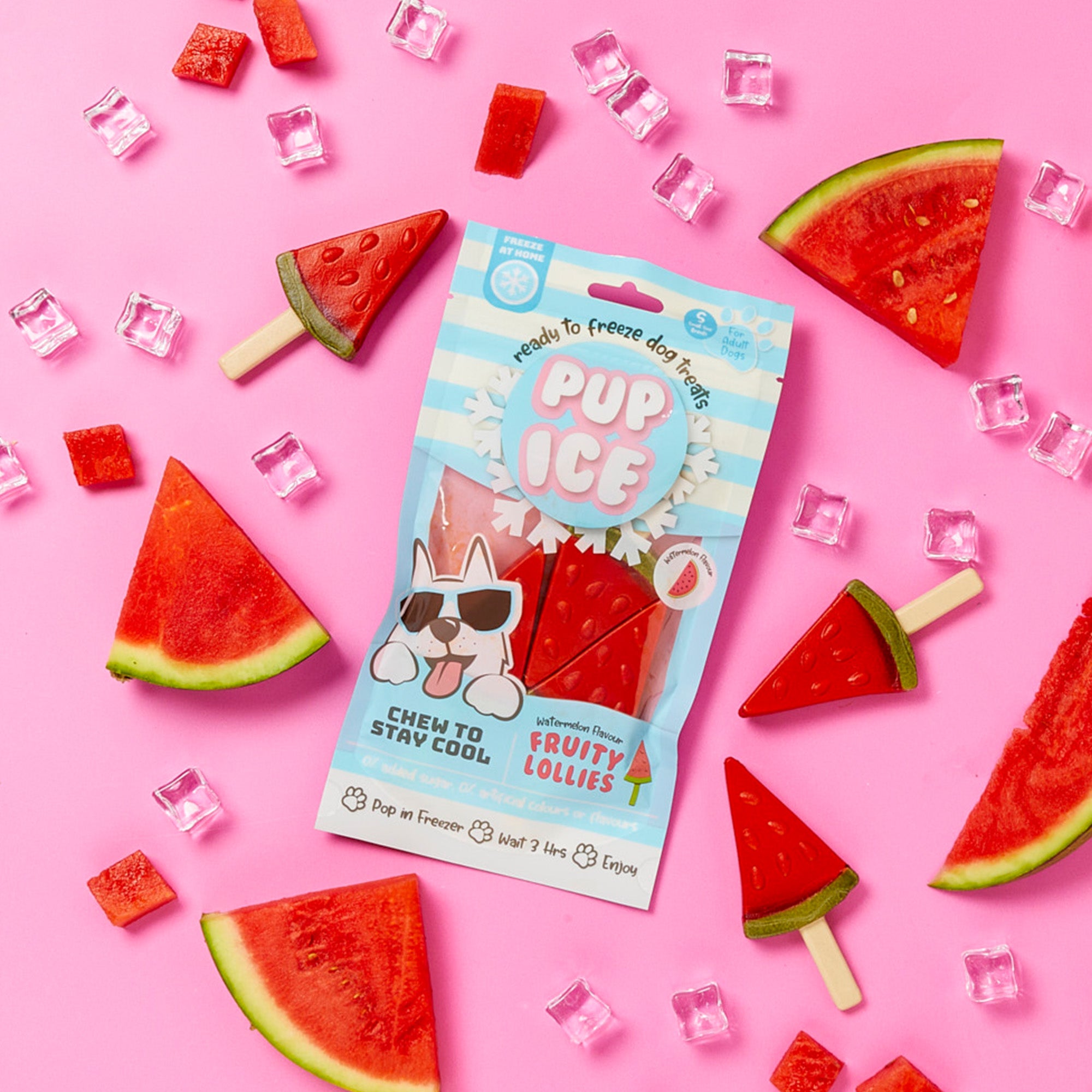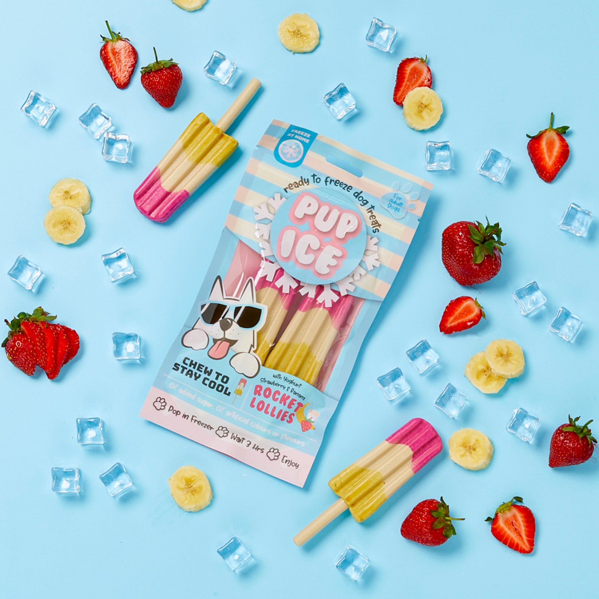 Je kunt ze eenvoudig thuis invriezen, het grote voordeel is dat deze traktaties rommelvrij zijn; ze smelten niet en druppen niet. Het is namelijk geen vloeistof, maar een stevige kauwsnack op basis van kip en groentezetmeel dat ingevroren kan worden. Deze snack is gemaakt met behulp van een unieke formule die het mogelijk maakt om ze in te vriezen. Ze zijn verrijkt met calcium en prebiotica voor extra gezondheidsvoordelen.