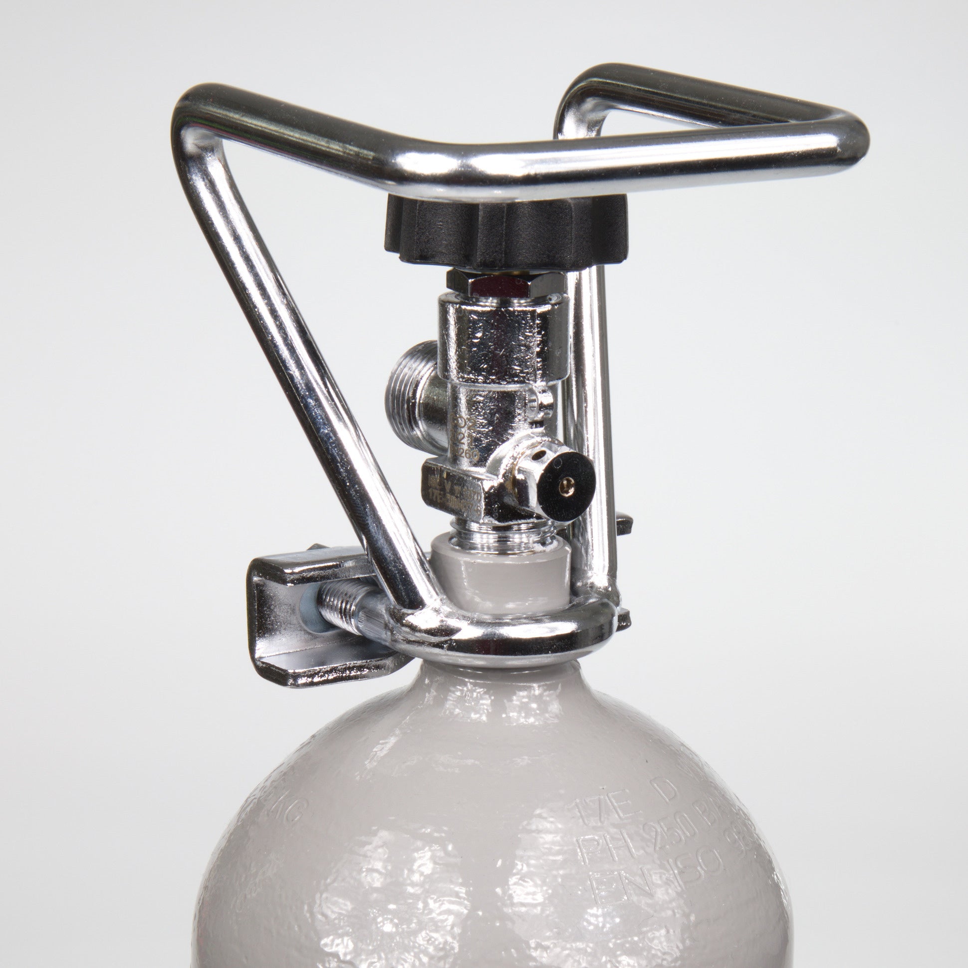 - TÜV gekeurde, hervulbare CO2 fles van 2 kg (schroefdraad W 21,8 x 1/14). Met overdrukventiel voor de veiligheid
