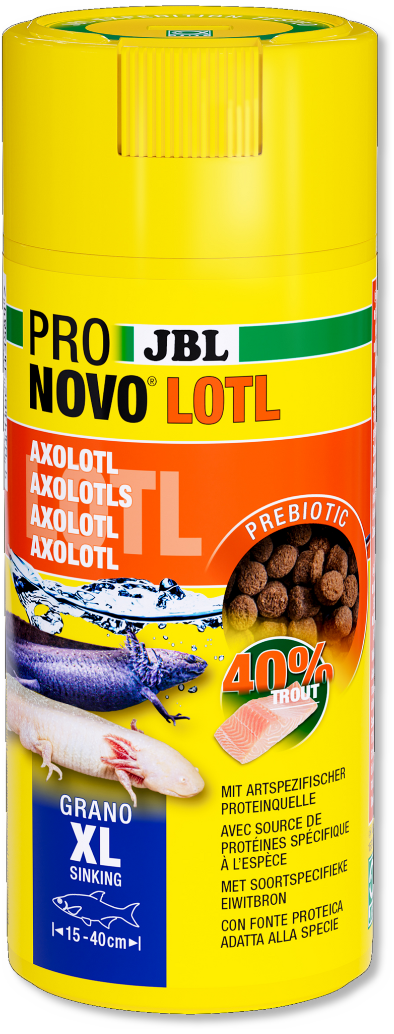 Axolotl vinden hun voer via geur, stroming en trillingen. Pronovo Lotl Grano heeft daarom een aantrekkelijke geur. De voeding bevat een hoog aandeel proteïne uit forel, garnalen, kreeftjes en insecten.