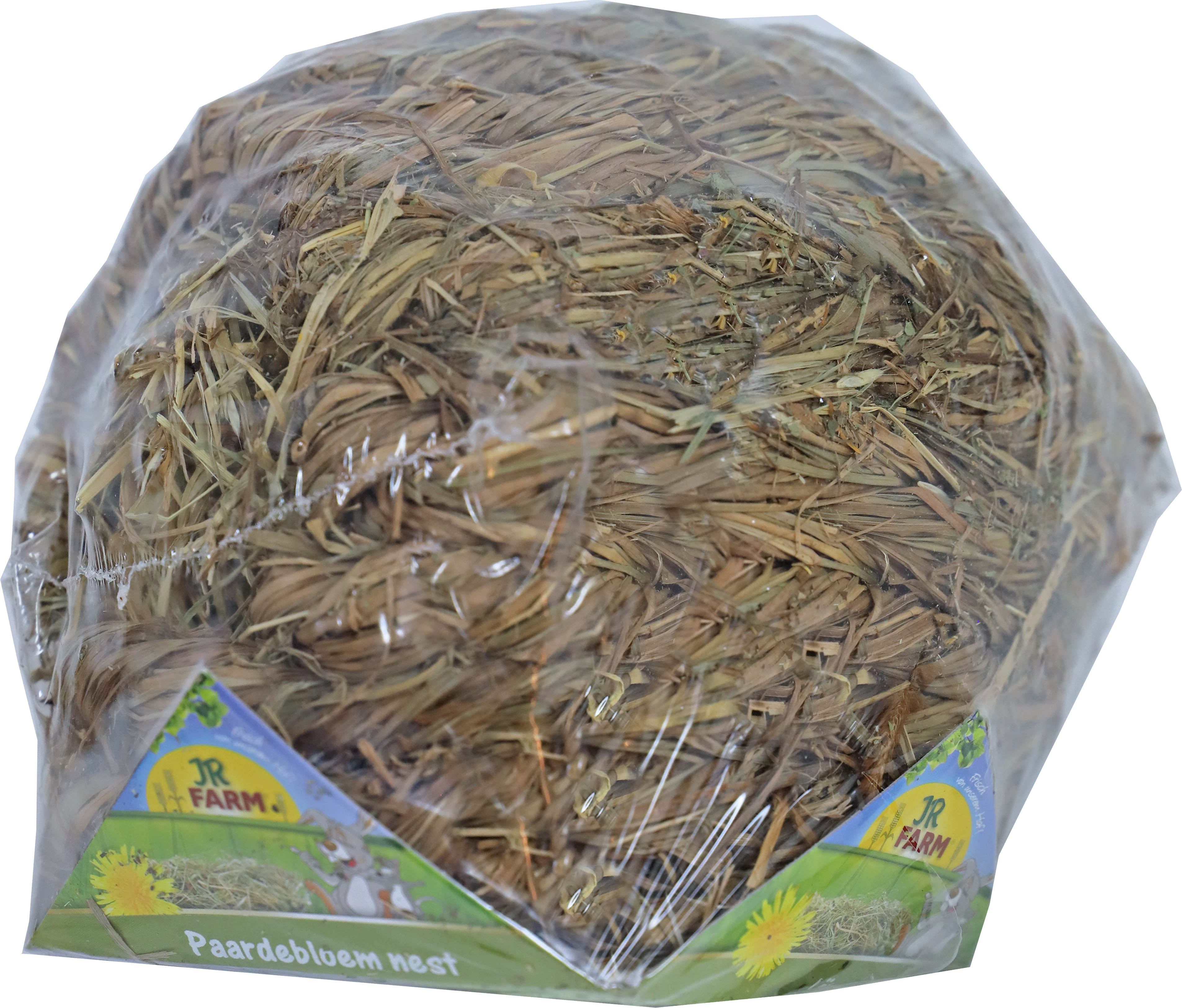 De JR Farm Nest Paardenbloem is een natuurlijk gevlochten bal, perfect voor spelen, verbergen en slapen. Dit nest is volledig eetbaar en gevuld met geurig hooi, paardenbloemen en goudsbloemen, waardoor je knaagdier kan genieten van een natuurlijke en gezonde snack.
