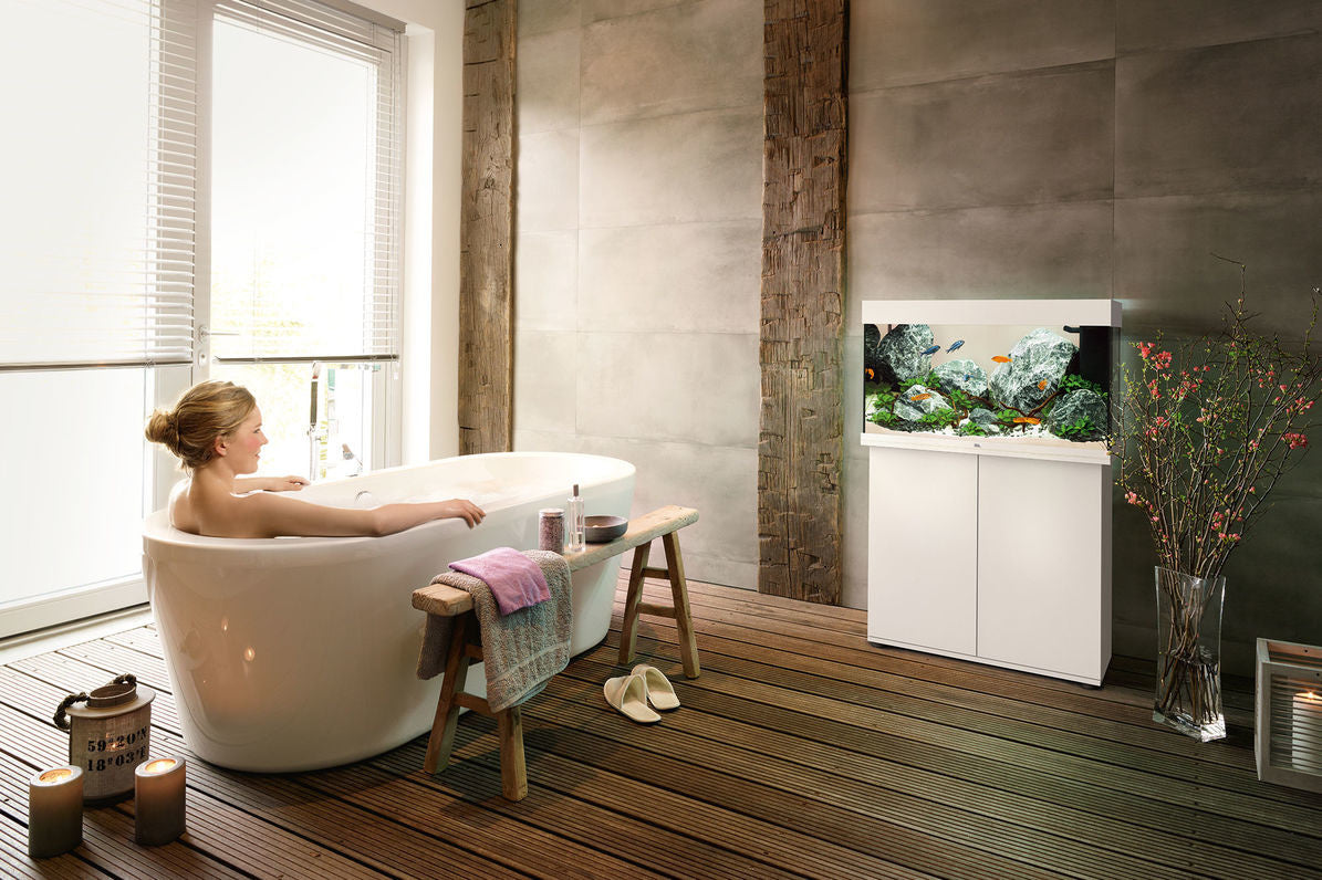 Aquarium Rio 125 met moderne grijze accenten. Inclusief alle benodigde apparatuur zoals energie zuinige ledverlichting, veilig binnenfilter, regelbaar verwarmingselement en een krachtige pomp.