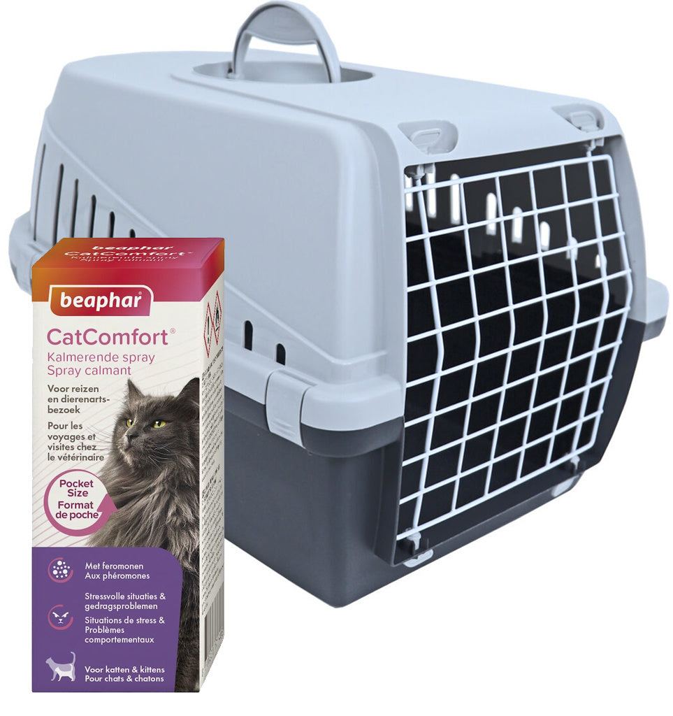 Moderne en handige reismand voor het vervoer van huisdieren, nu met handige kalmerende spray op basis van feromonen.