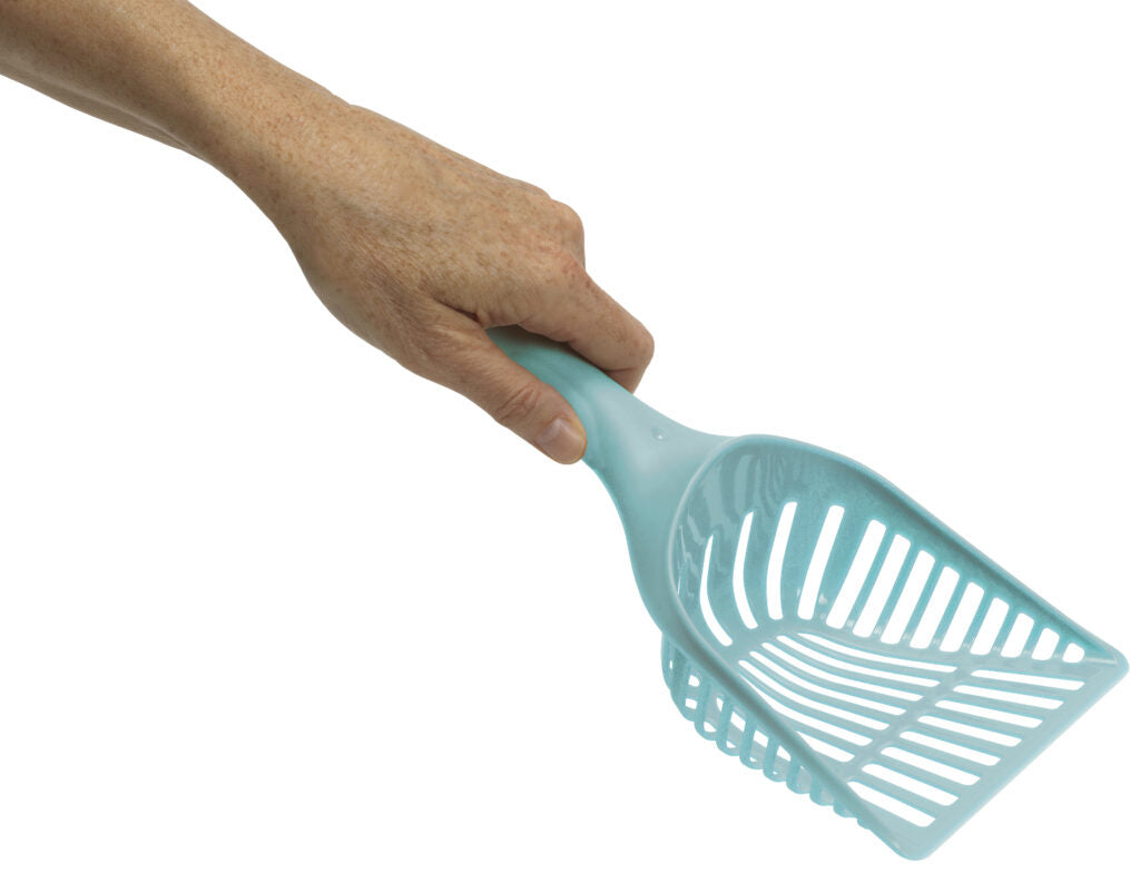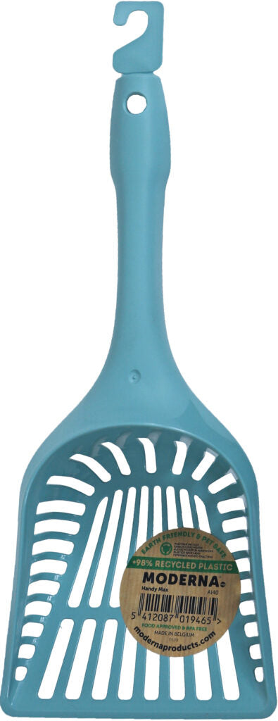 Met de Kattenbakschep Handy Max wordt de kattenbak schoonmaken hygiënischer én milieuvriendelijker. De schep is gemaakt van meer dan 98% gerecycled plastic en is BPA-vrij. De ergonomische handgreep ligt prettig in de hand, zelfs bij dagelijks gebruik. Makkelijk schoon te maken met warm water en verkrijgbaar in Aquarelle (blauw) of Warmgrijs.