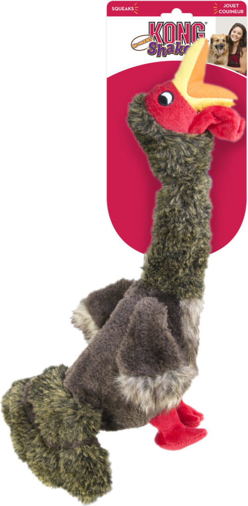 Met de KONG Shakers Honkers Kalkoen Large beleeft je hond eindeloos speelplezier! De getextureerde nek bevredigt het natuurlijke kauwinstinct, terwijl de lange, slappe poten uitnodigen tot schudden en trekken. Dankzij de lage pieptoon en het stevige pluche ontwerp blijft je hond langer geboeid.