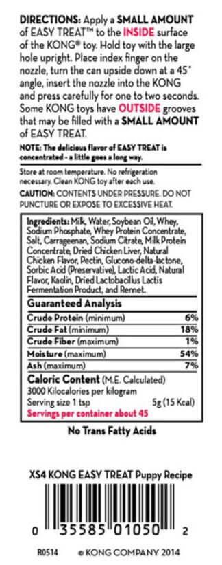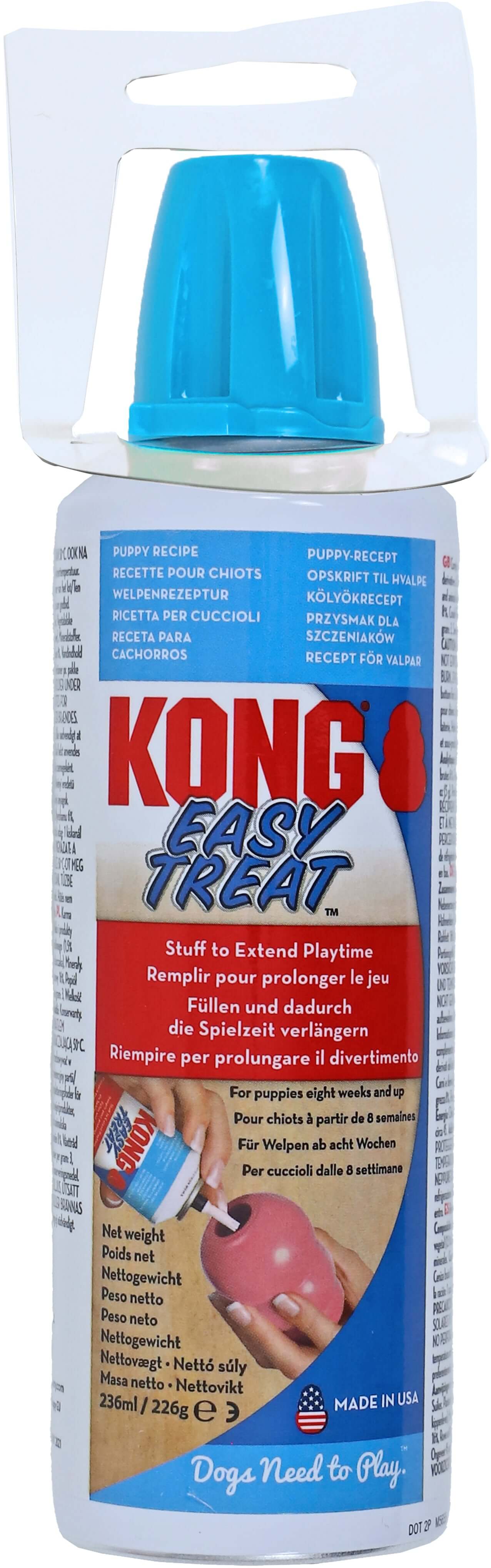 De KONG Spuitbus Puppy Treat is speciaal samengesteld om te voldoen aan de behoeften van puppies. Met de onweerstaanbare kipleversmaak is deze traktatie perfect voor het vullen van Puppy KONG speeltjes. Handig in gebruik en ideaal om trainingen leuker te maken!