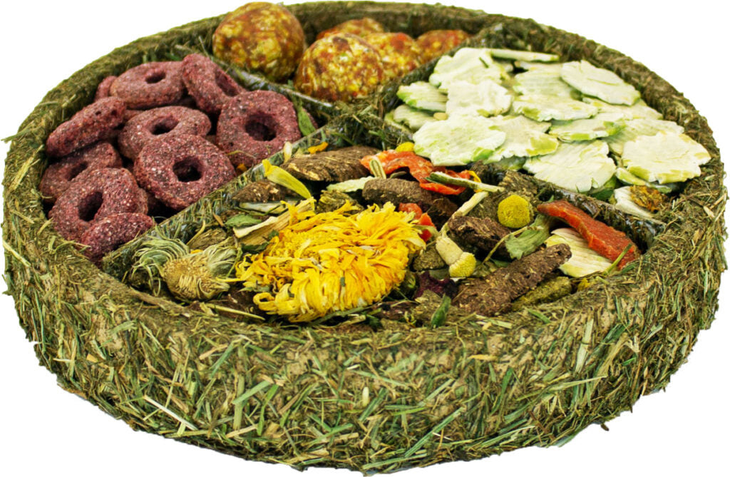 Dit is een complete gourmetschotel met diverse lekkernijen voor knaagdieren en konijnen!