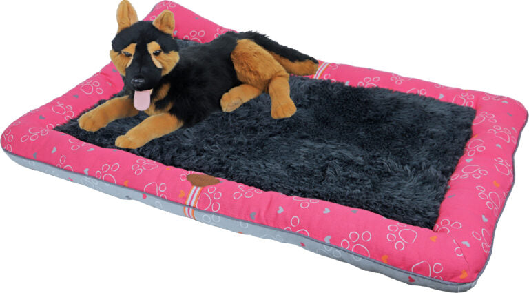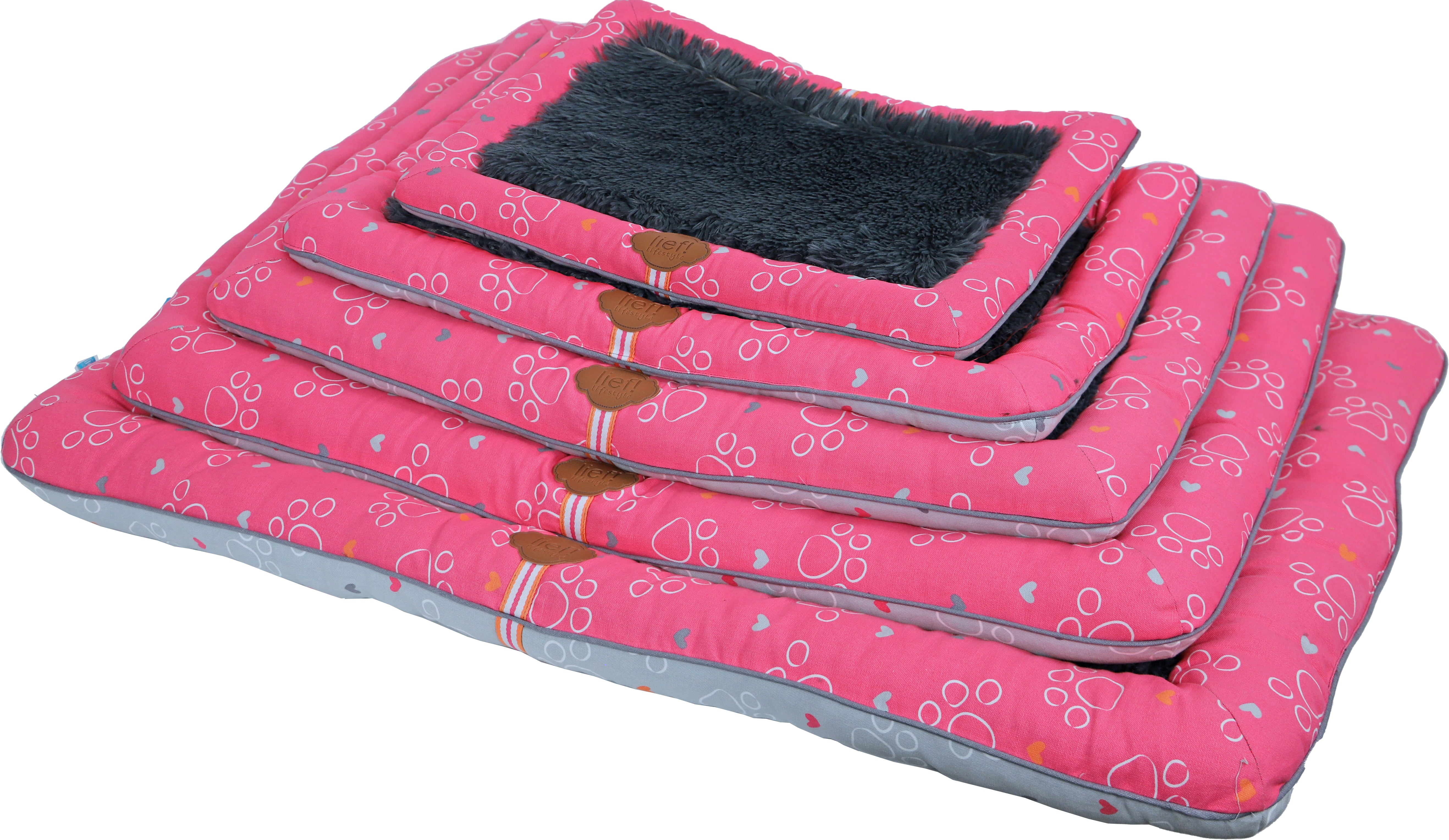 Tweezijdig ontwerp: Eén kant in rozerood, de andere in lichtgrijs met een schattige poot- en "Girls"-print.