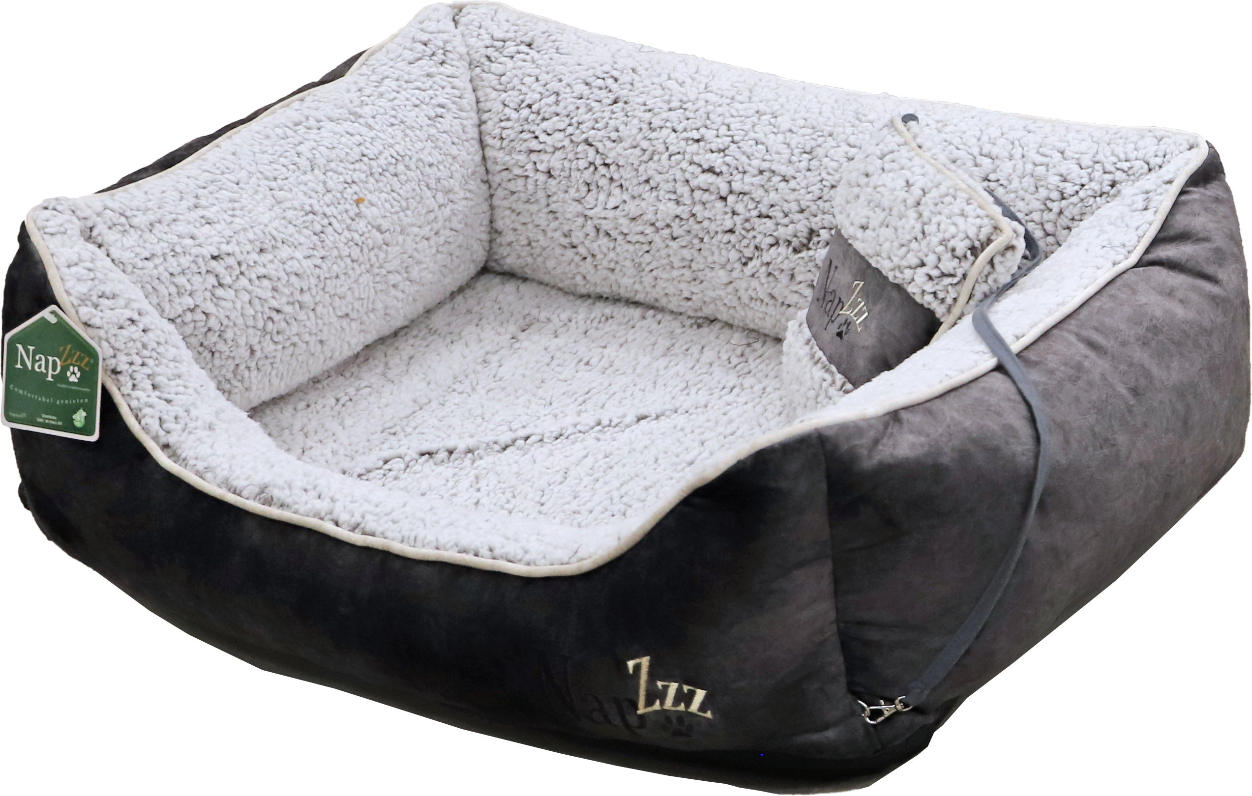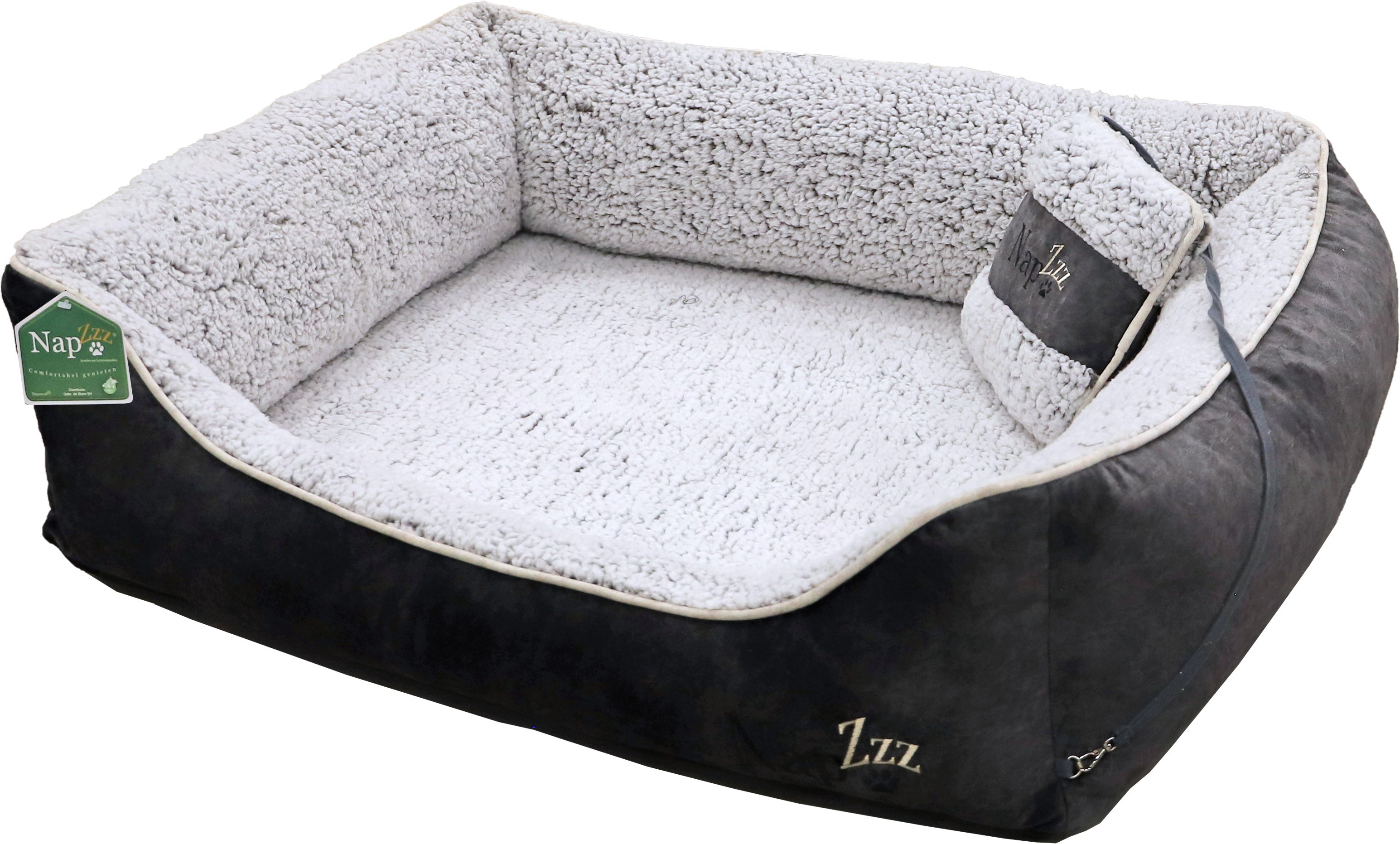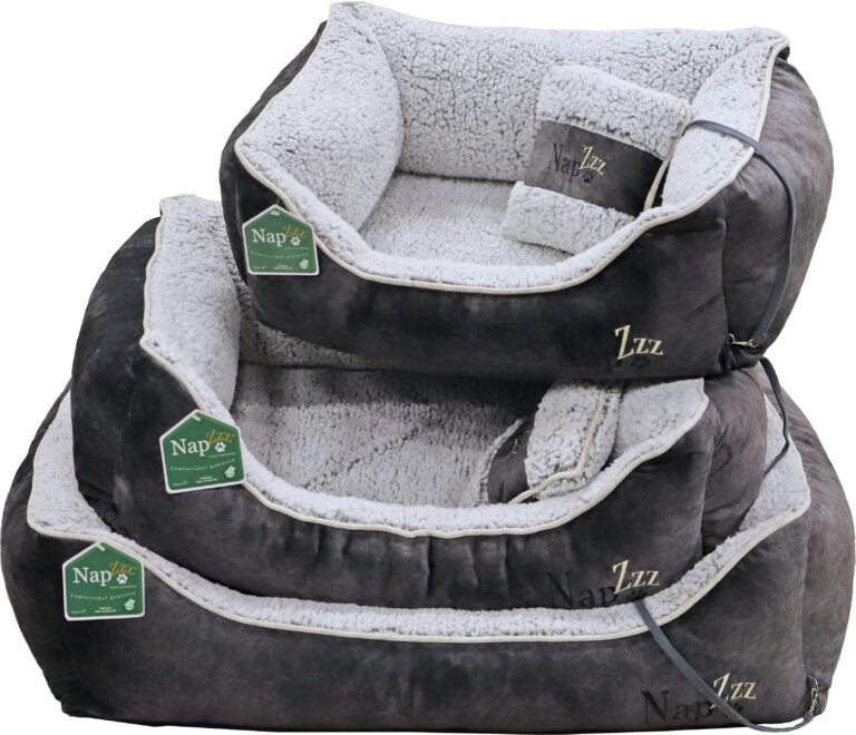 De Nap’zzz divan met kussen biedt een ongeëvenaarde combinatie van zachtheid, luxe en stevigheid. De hoge randen van 25 cm zorgen ervoor dat jouw hond zijn hoofd comfortabel kan laten rusten zonder de grond te raken. De vulling is stevig en het dikke schuimrubberen matras biedt uitstekende ondersteuning. Zowel de hoes als het matras zijn volledig afritsbaar en machinewasbaar op 30°C, waardoor onderhoud eenvoudig is.
