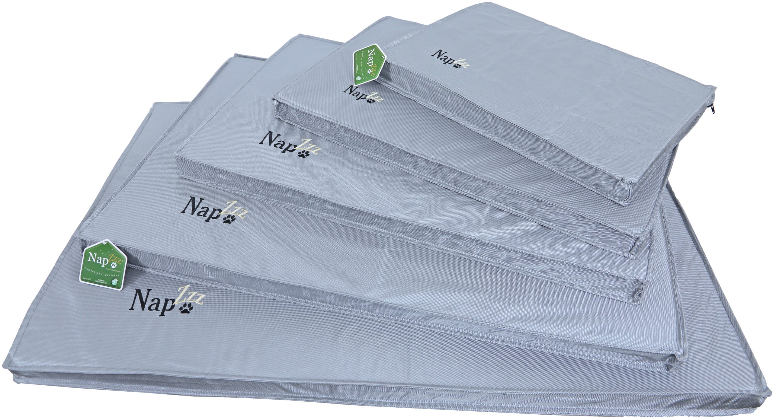 Het Nap'zzz Draadkooikussen Waterproof Grijs/Zwart is een stijlvol, waterafstotend kussen dat perfect past in de meeste draadkooien. Dit stevige en praktische kussen is ideaal voor dagelijks gebruik of om mee te nemen op vakantie. Het is makkelijk schoon te maken, wasbaar en biedt een comfortabele rustplek voor je hond.