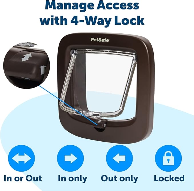De PetSafe Kattendeur Handmatig 4-Lock Bruin PPA biedt jouw kat vrijheid, terwijl jij de controle behoudt. Dit duurzame en stijlvolle kattenluik is eenvoudig te monteren in verschillende materialen zoals hout, PVC en glas. Met de handige 4-standenvergrendeling bepaal je precies hoe jouw kat toegang krijgt.