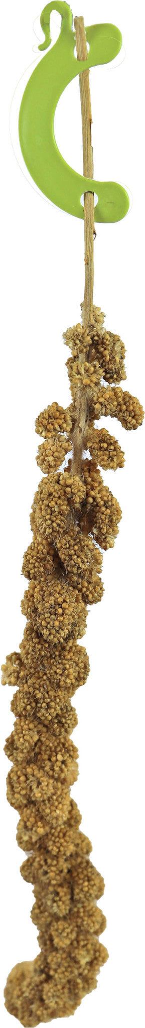 Trosgierst kan in het vogelverblijf worden opgehangen en zal uw vogels op natuurlijke wijze bezig houden. Geschikt voor grote en kleine parkieten. Circa een halve sliert gierst per week aanbieden.