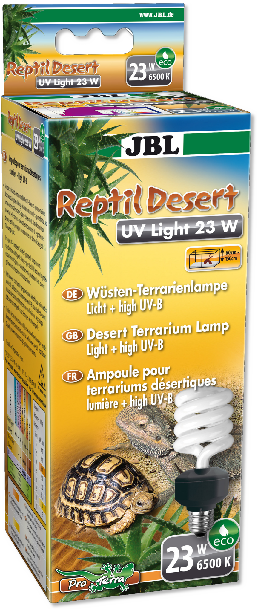 ReptilDesert UV Light met UV-A en UV-B licht. UV-A bevordert de eetlust, activiteit en voortplanting. UV-B bevordert de aanmaak van vitamine D en behoud van sterke botten en spieren.