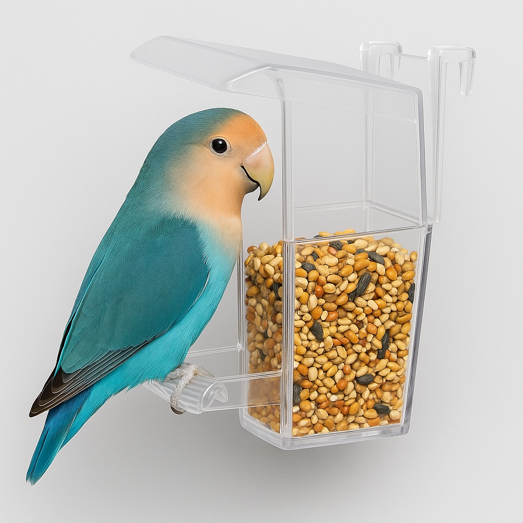 Geef je gevleugelde vriendjes een rustige plek om te eten met dit transparante kapbakje met kap, zitstok en ophanghaken—ideaal voor horizontale vogelkooi- of volièretralieën. De kap voorkomt morsen, en het ontwerp is geschikt voor diverse zaden en pellets, voor een rustige en comfortabele eetervaring.