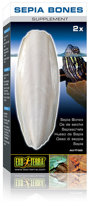 De Exo Terra Sepia Bowl is een uitstekende bron van calcium voor reptielen en amfibieën. De Exo Terra Sepia Bowl kan volledig worden benut als extra bron van calcium voor schildpadden. Het ruwe, eetbare oppervlak helpt snavel-overgroei en ongewenst kauwgedrag bij land-, water- en vijverschildpadden te voorkomen. Omdat ze drijvend zijn, zijn ze ideaal voor alle waterschildpadden. Ze zijn ook geschikt voor alle soorten hagedissen. De Exo Terra Sepia Bowl kan ook in kleinere stukjes gesneden of vermalen worden tot poeder en kan gebruikt worden als voedingssupplement voor hagedissen zoals gekko's, agamen, leguanen, skinken, varanen, tegus, etc.