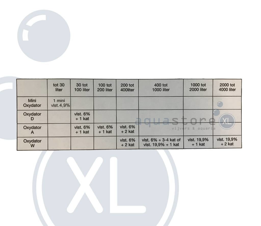 Deze oxydator voorziet het aquarium van pure zuurstof. Dit werkt onder de volgende reactie: