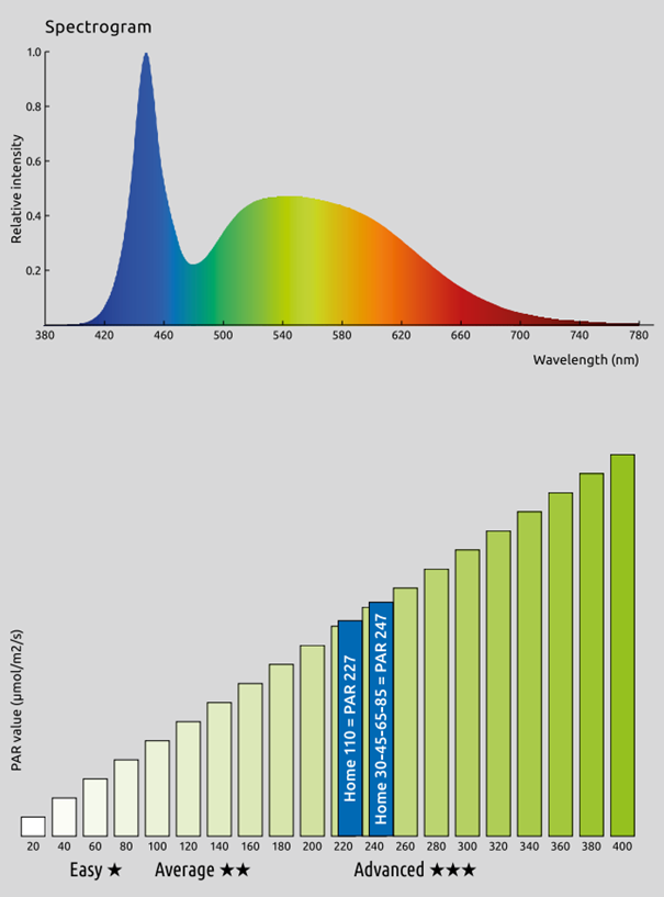 Het deel van het licht dat planten gebruiken voor fotosynthese, wordt PAR genoemd. Hoe hoger de PAR, hoe beter de plant groeit. Alle nieuwe Home- en QubiQ (Pro) aquaria zijn voorzien van een vernieuwde verlichtingsunits met een zeer hoge lichtopbrengst. Daarmee zij de aquaria ook geschikt voor het plaatsen van planten met hoge lichtbehoefte. Zie de tabel in de afbeeldingen voor meer informatie.