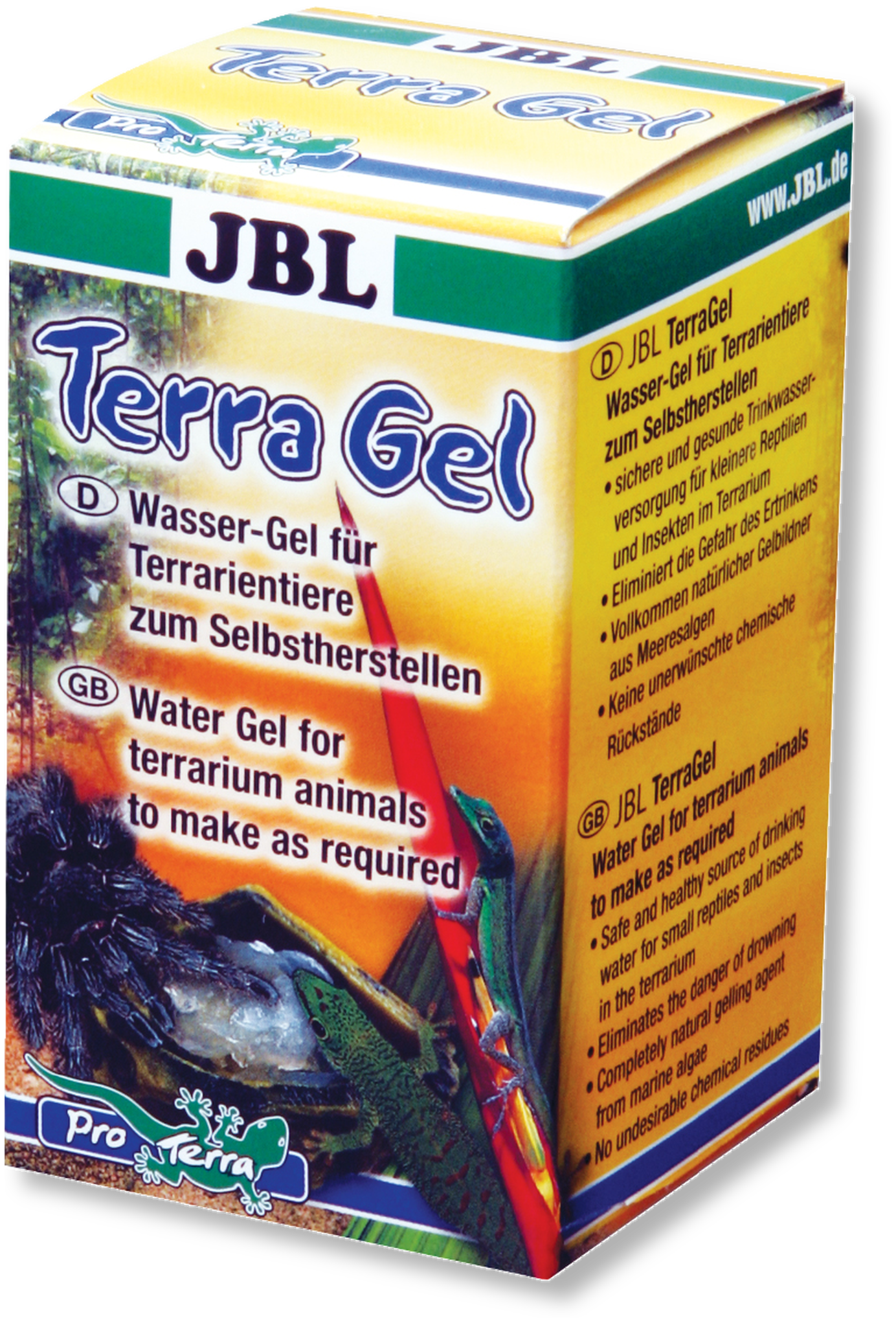 Kleine terrariumbewoners zoals reptielen en spinnen lopen het gevaar om te verdrinken zodra zij willen drinken. Terragel biedt een veilige manier om hen altijd vocht aan te kunnen bieden. Terragel is plantaardig en bevat geen dierlijke of chemische bestanddelen.