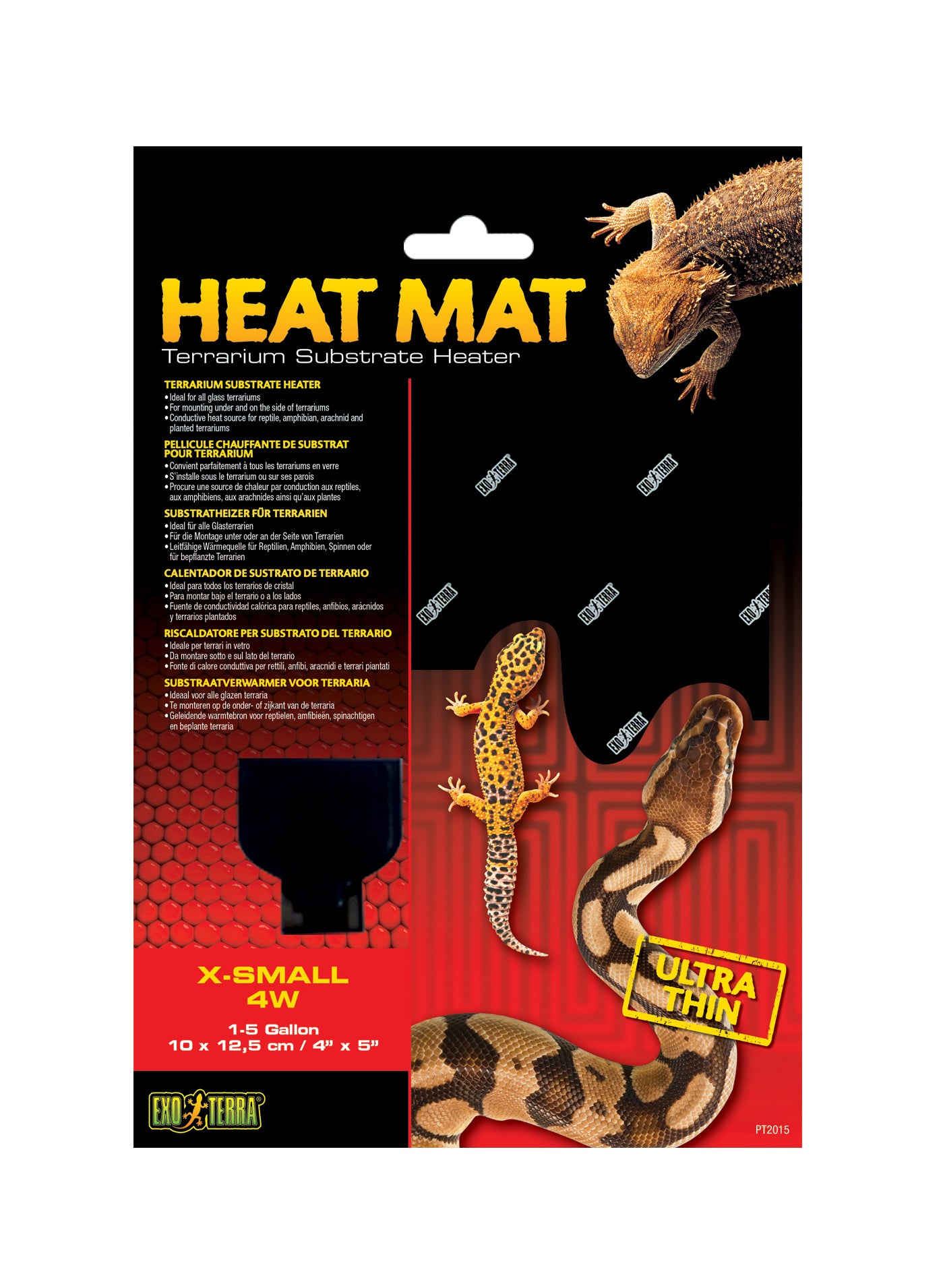 De Exo Terra Substraatverwarmer of Heat Mat is een terrarium substraatverwarmer die door de zon verwarmde oppervlakken simuleert. Reptielen en amfibieën zijn koudbloedig en gebruiken in hun natuurlijke habitat vaak oppervlakken die door de zon worden verwarmd om op te warmen. Dit is belangrijk voor hun stofwisseling, spijsvertering, eetlust en activiteit.