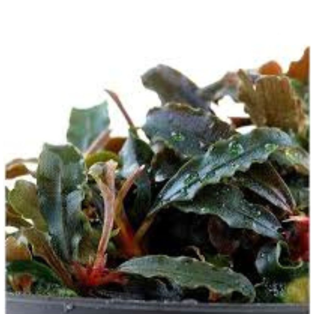 De Bucephalandra 'Kedagang' is een unieke plant met groen blad en een hint van rood.