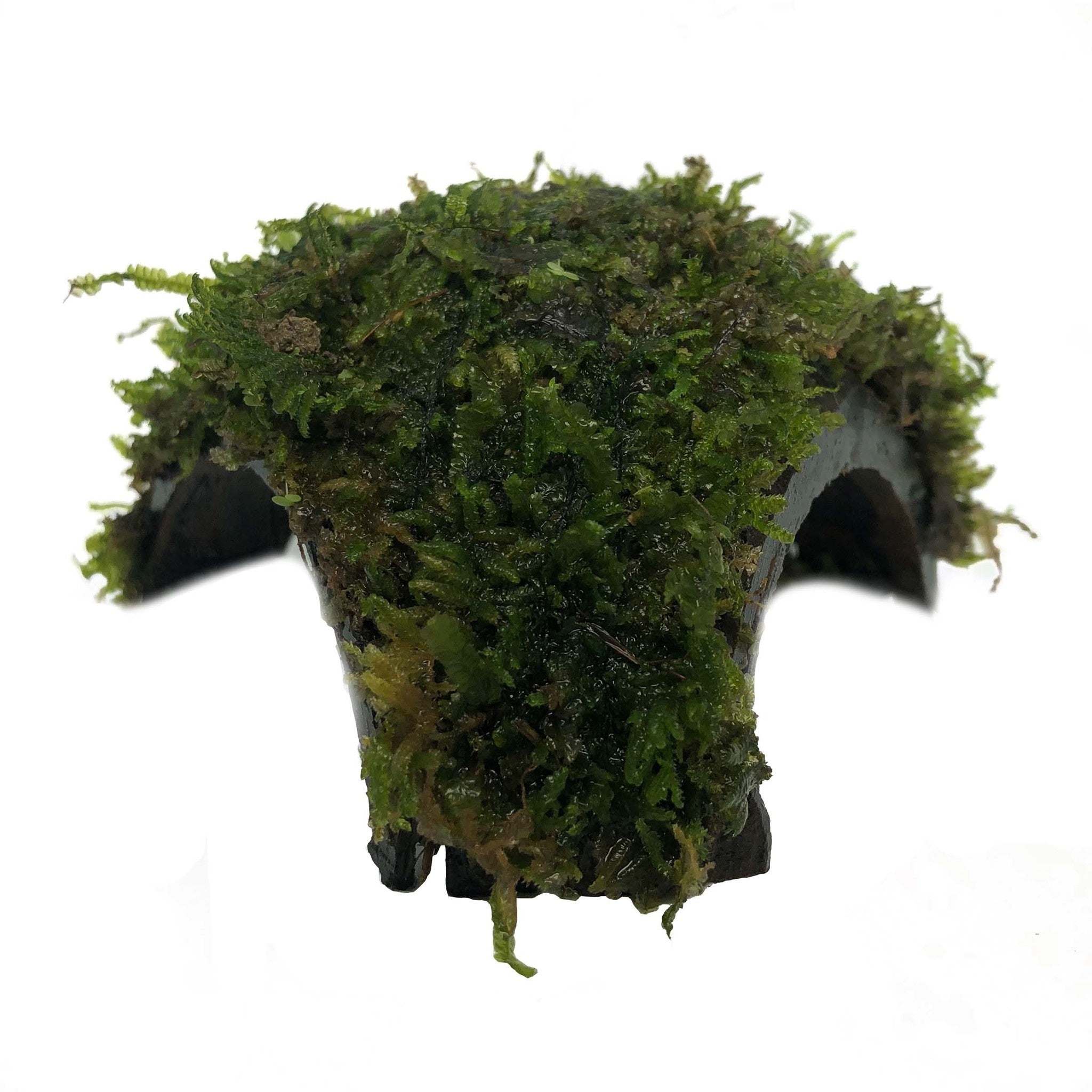 Kokosnoot driegaats met gebonden javamos. Javamos groeit snel, neemt veel afvalstoffen op en is gemakkelijk te onderhouden. Tussen het mos kan voedsel blijven hangen voor garnalen om te eten. Kan direct in het aquarium worden geplaats.